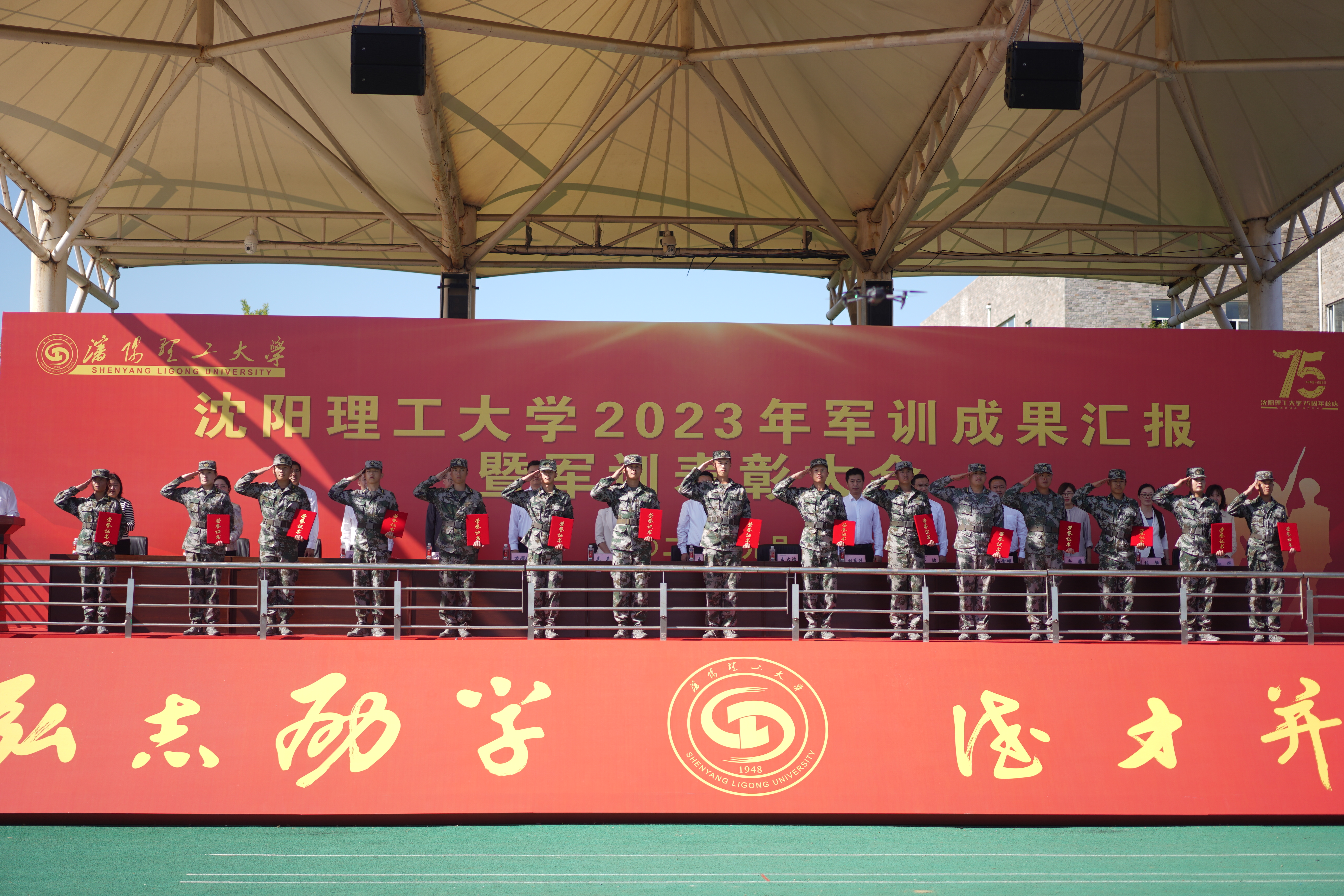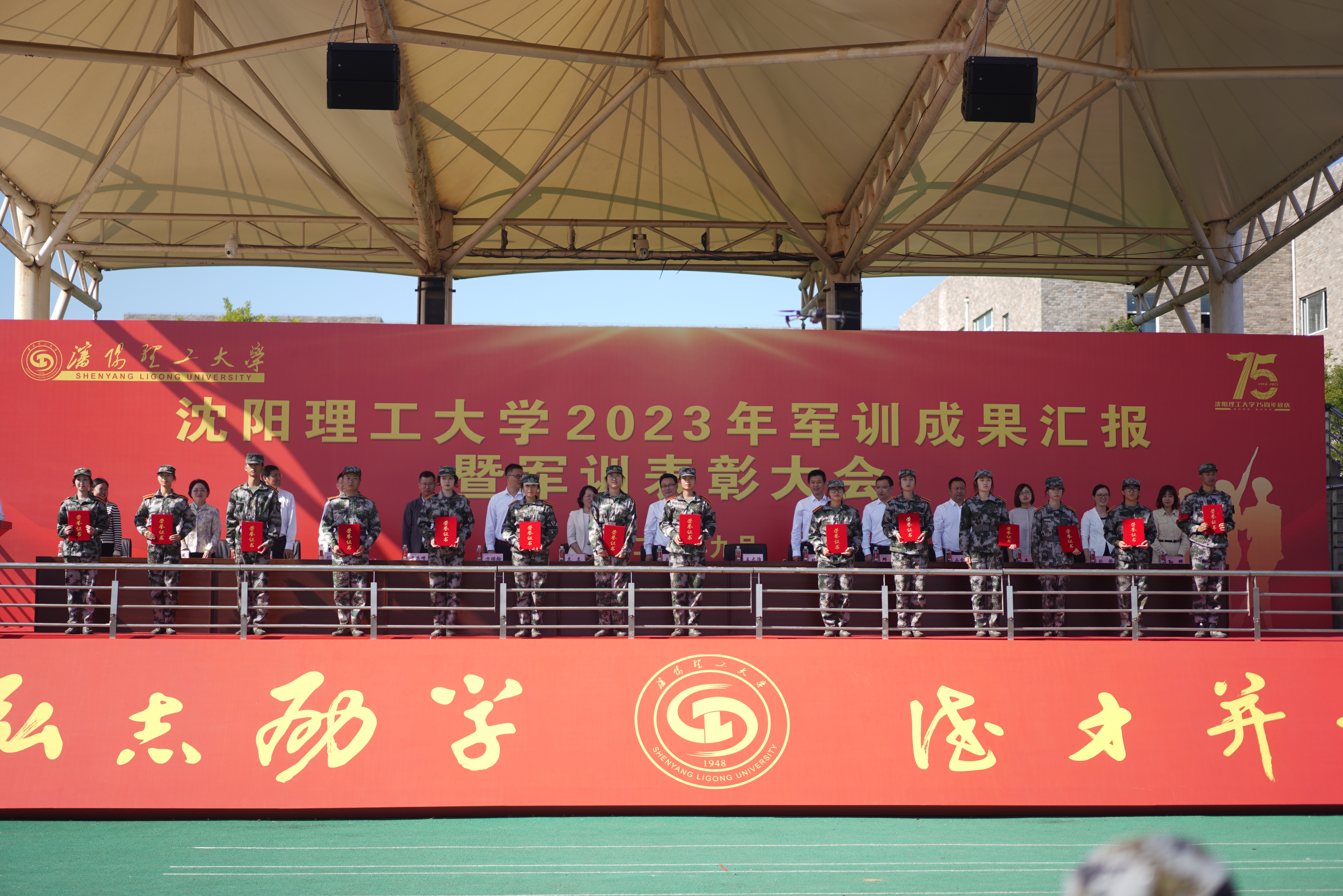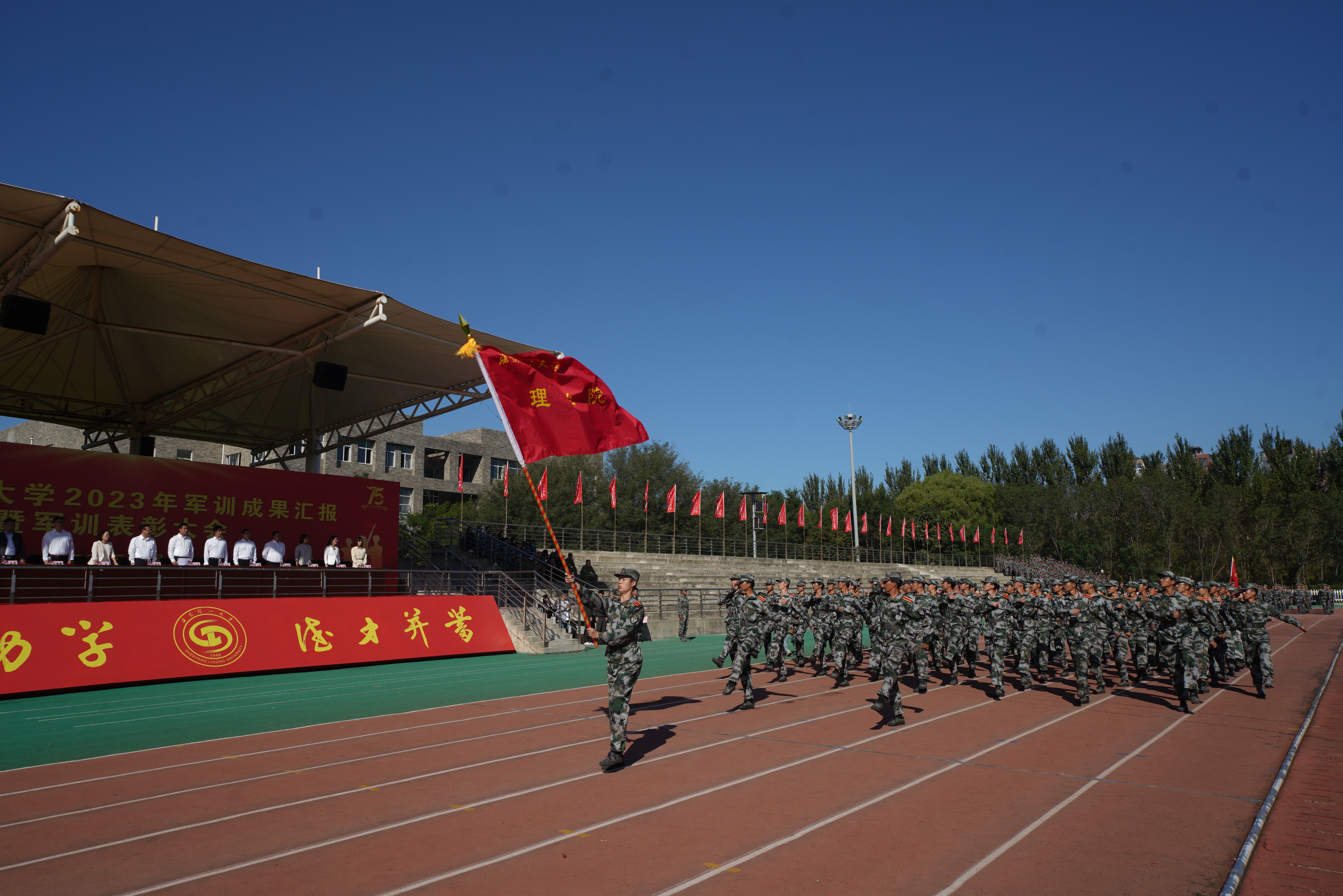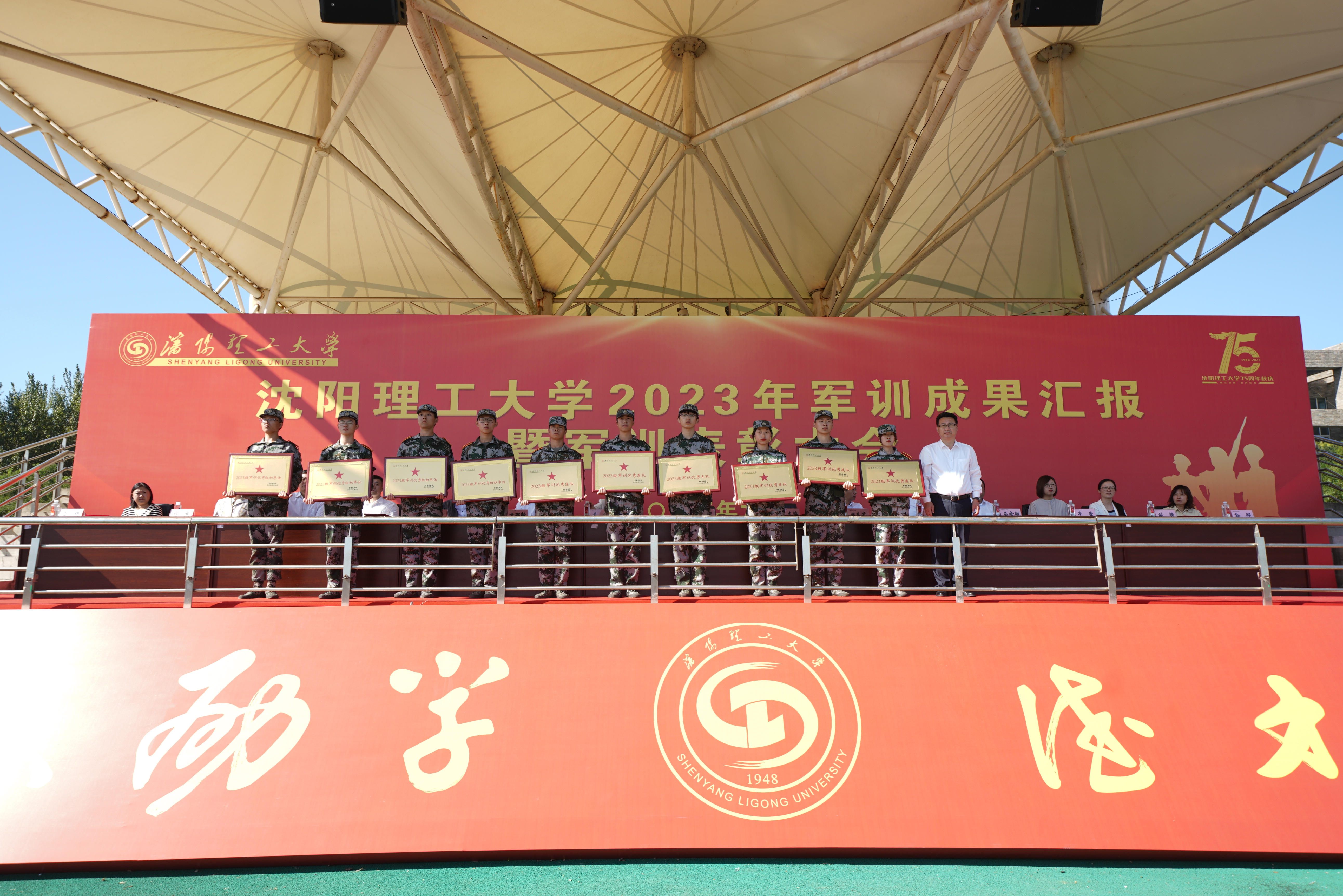 秋风送爽,沙场点兵。9月28日上午9时,沈阳理工大学2023级军训成果汇报暨军训表彰大会在龙翔体育场隆重举行。校党委副书记王继成、学生处、武装部、国防教育学院负责同志,各学院分管学生工作的书记、副书记,新生辅导员和全体2023级本科生出席本次大会,会议由学生处处长王大治主持。