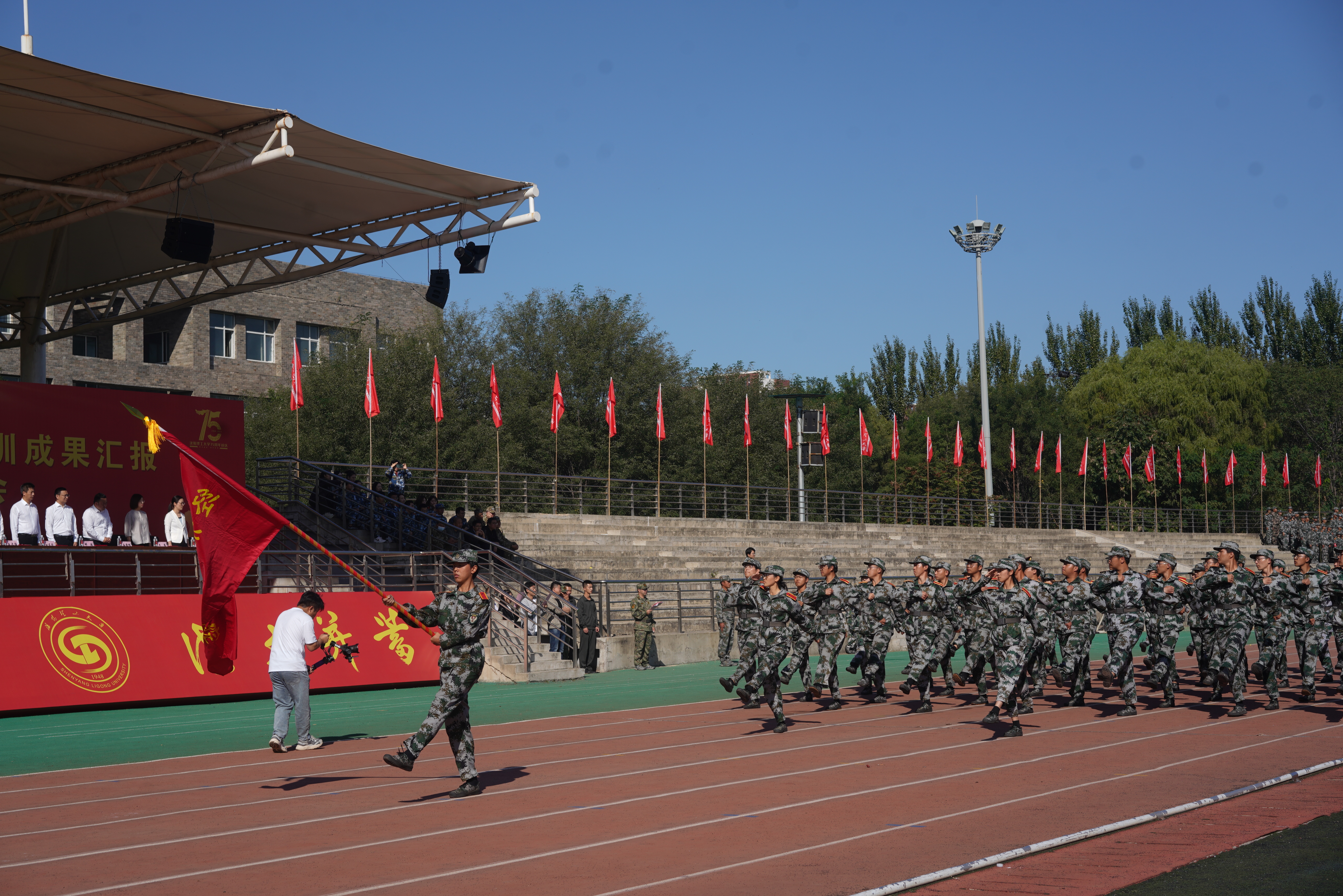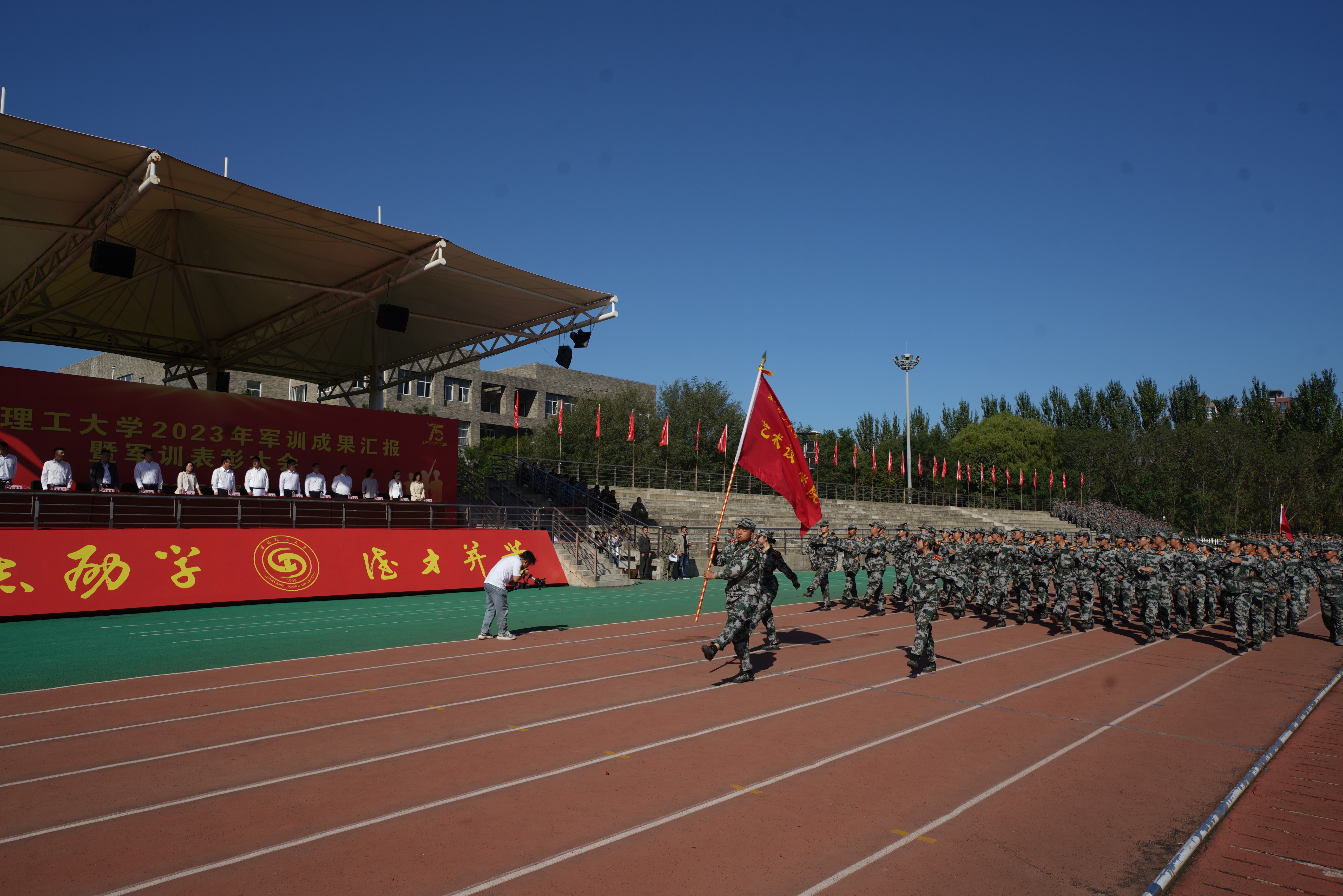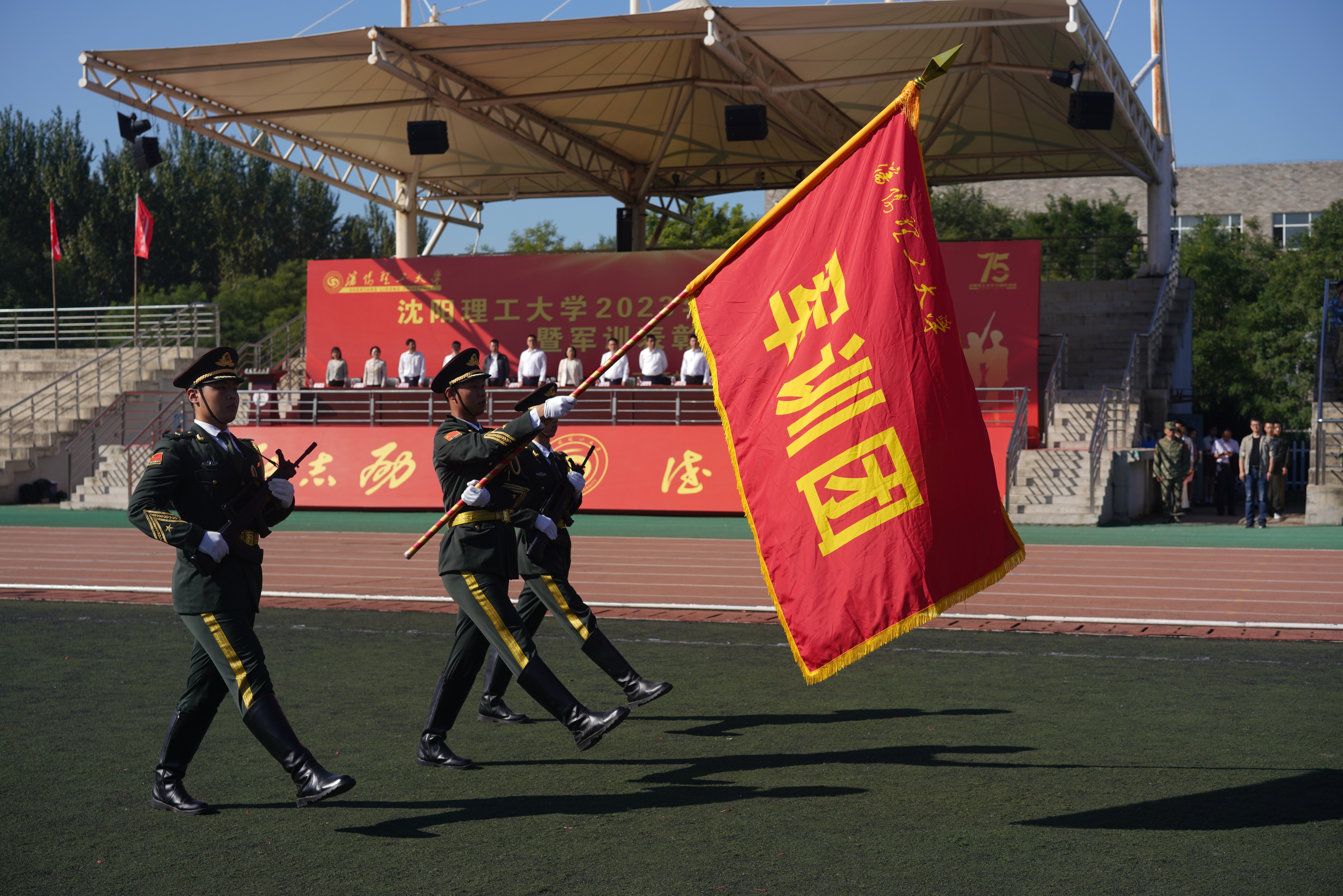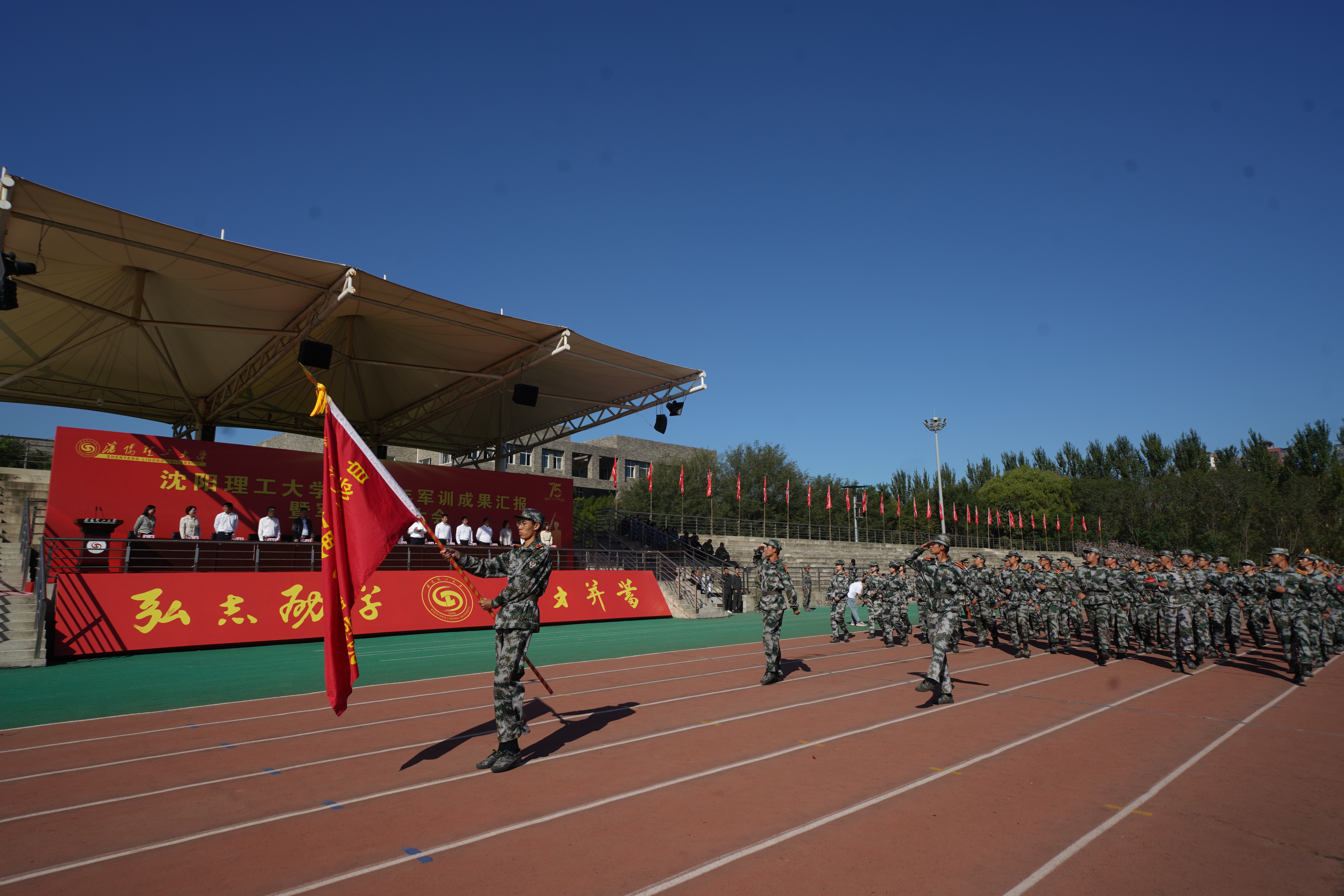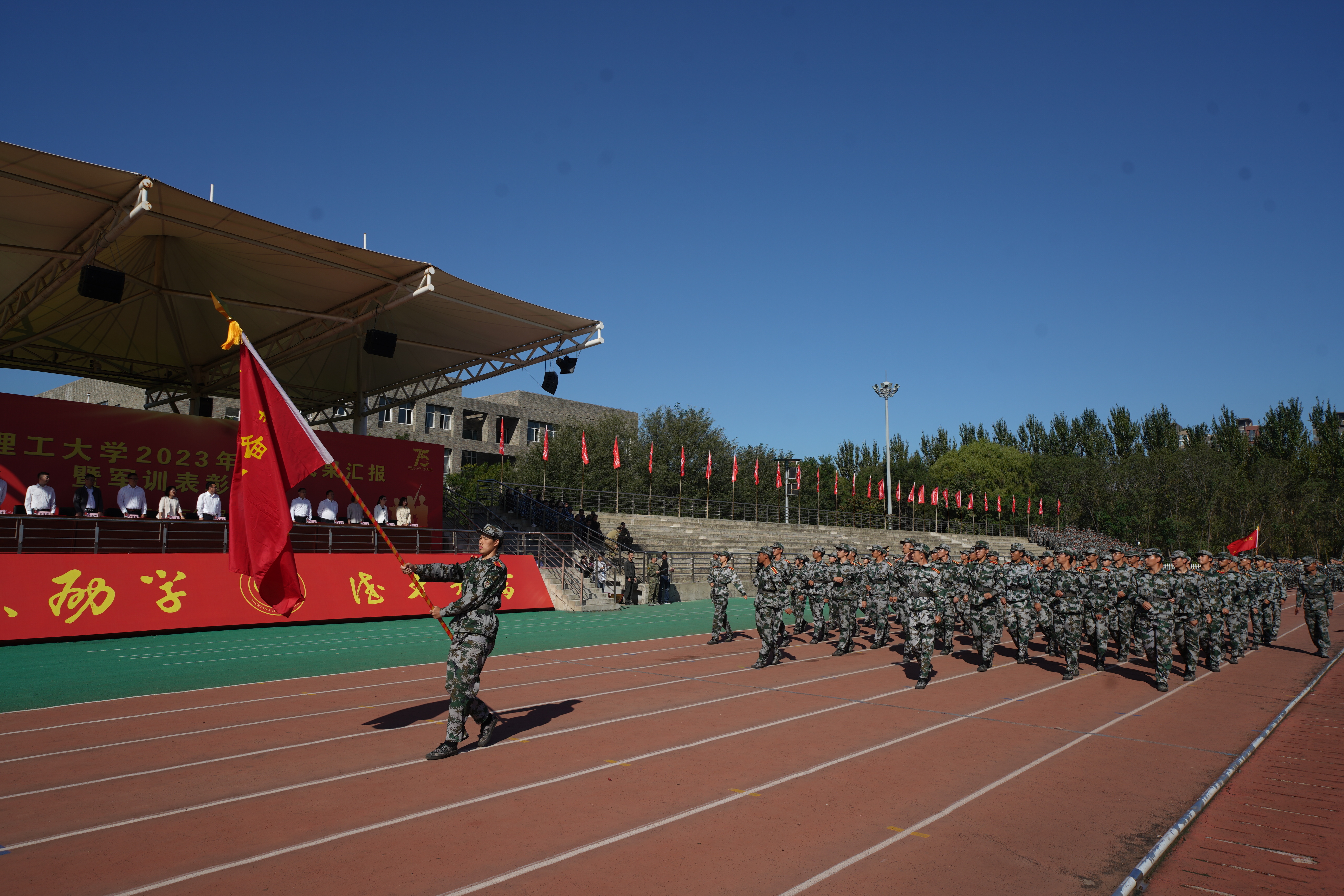 秋风送爽,沙场点兵。9月28日上午9时,沈阳理工大学2023级军训成果汇报暨军训表彰大会在龙翔体育场隆重举行。校党委副书记王继成、学生处、武装部、国防教育学院负责同志,各学院分管学生工作的书记、副书记,新生辅导员和全体2023级本科生出席本次大会,会议由学生处处长王大治主持。