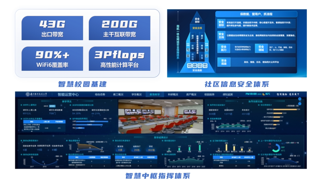 南航紧扣“教育数字化”战略部署,聚焦“筑基、融通、智创”,构建“需求即时感知—资源动态配置—服务智能触达”的社区智慧育人生态。通过全域覆盖的数字基座、深度融合的数据生态、智能创新的服务场景,推动学生教育管理向智慧化、精准化转型,为高质量“一站式”学生社区建设注入“数智动能”,获评工信部、教育部“5G+智慧教育应用试点项目”“江苏省智慧校园示范校”等7项国家级、省级荣誉。