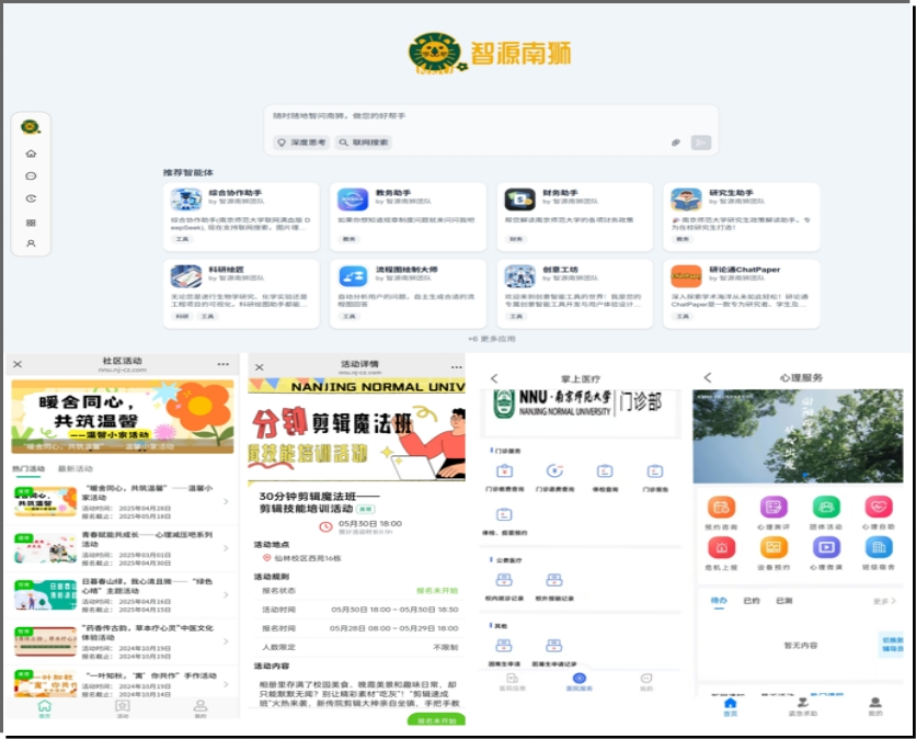 引入“智源南狮”“掌上南师”AI思政助手,基于人工智能模型,为学生提供 24 小时政策咨询、理论学习、心理疏导等服务。搭建“智能答疑平台”,整合专业教师、优秀学长等资源,通过智源南师AI实时答疑与人工辅导结合,年均解答学术问题10万余次,形成“数据诊断—精准干预—效果反馈”的闭环支持机制。