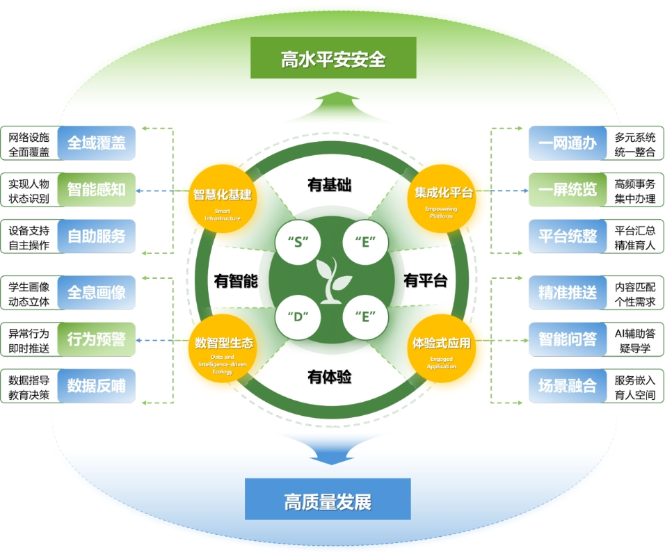 集成化平台作为“SEED”系统的协同枢纽,以“数据互通、业务融合、服务高效”为目标,打破部门壁垒,构建起跨系统、跨层级的立体化服务网络,实现从“分散管理”到“协同治理”的范式转型,为“立德树人”整合资源、凝聚合力。