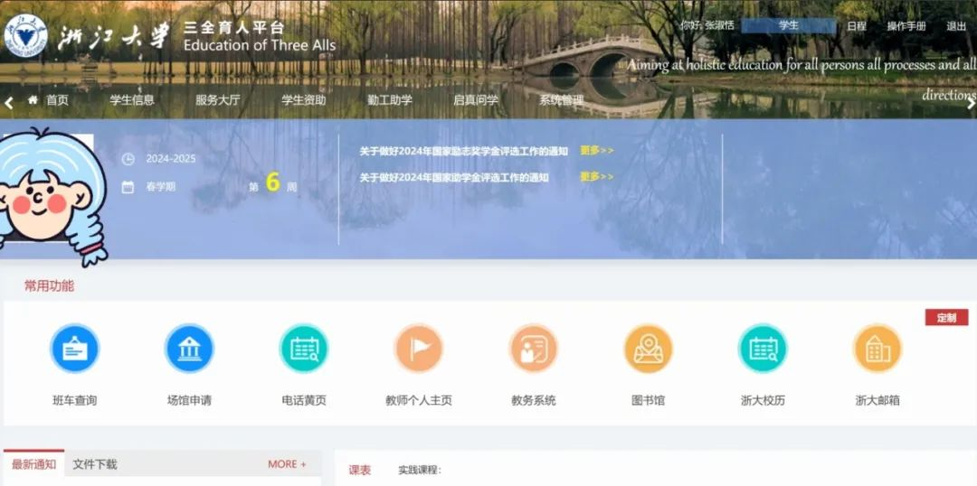 场景应用“创价值”,保障成长服务“一键响应”。浙江大学聚焦学生成长痛点,以数字化场景创新为抓手,打造成长服务“一键响应”的智慧社区生态。创新校内纪念场馆线上育人阵地。围绕党史学习教育、爱校荣校教育等主题,依托混合现实技术(MR)、虚拟现实技术(AR)等载体,将学校党建馆、校史馆、各校区、图书馆、科技创新馆等搬上云端,在“一站式”学生社区中通过场景应用、沉浸式教学,切实提升育人成效。推动虚实融合、内外融通教学空间建设。全链路、一体化建设“学在浙大”课程管理平台、“智云课堂”线下教学直录播平台、“浙大钉”线上教学平台,借助AI智慧学伴,随时提供智能答疑,生成个性化的学习路径,构建全域开放的教育模式。目前,“学在浙大”已制作课程5万余门次,平台总访问量超过2亿人次;“智云课堂”每天直播课程2000余节,日均访问量4.4万余次。提升生成式人工智能浪潮下的未来人才素养。发布《大学生人工智能素养红皮书》《高校教师人工智能素养红皮书》,开设人工智能通识必修课程群,面向各学科专业开设分层次AI+X学科交叉课程群,打造系列人工智能高水平教材体系,推出DeepSeek系列专题线上公开课,以帮助学生提高人工智能素养,应对技术带来的社会变革。这些场景化服务不是简单的功能叠加,而是通过数据融通产生的“化学反应”,真正实现“按下需求键,响应零延迟”。