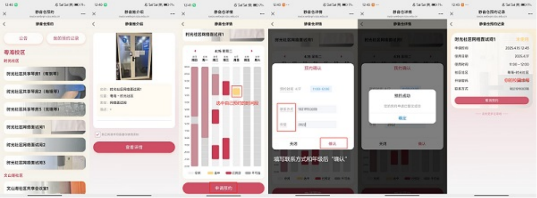 针对社区空间预约繁琐,利用率低等问题,“智慧学工平台”上线社区活动场地管理功能,可实现掌上预约、密码开锁、现场签到、黑名单管理等功能。现已覆盖全校46间学生活动室,22间静音舱,共计6200㎡空间,大幅提升社区生活便利性,有效促进育人活动开展。2025年上线以来,已预约使用达7653人次,举办活动150余场,参与学生超7万人次,好评率高达98%。