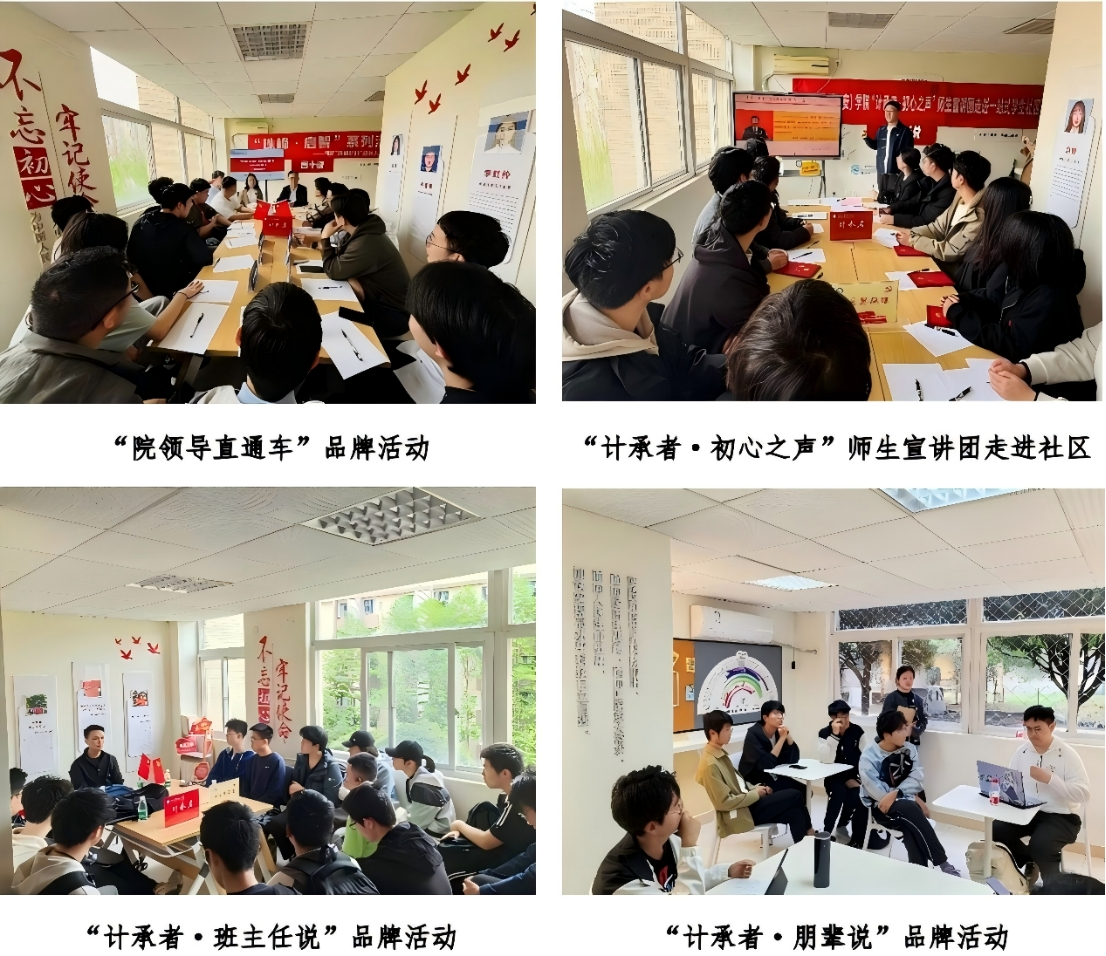 组建“计承者·初心之声”师生宣讲团,围绕理论政策、科技报国等主题,融入人工智能、大数据安全等专业热点,线上线下联动开展云端社区思政课70余场。通过“思想引领-专业成长-实践创新”育人机制,实现价值引领与专业教育有机融合,提升学生数智思维素养与科技报国意识。