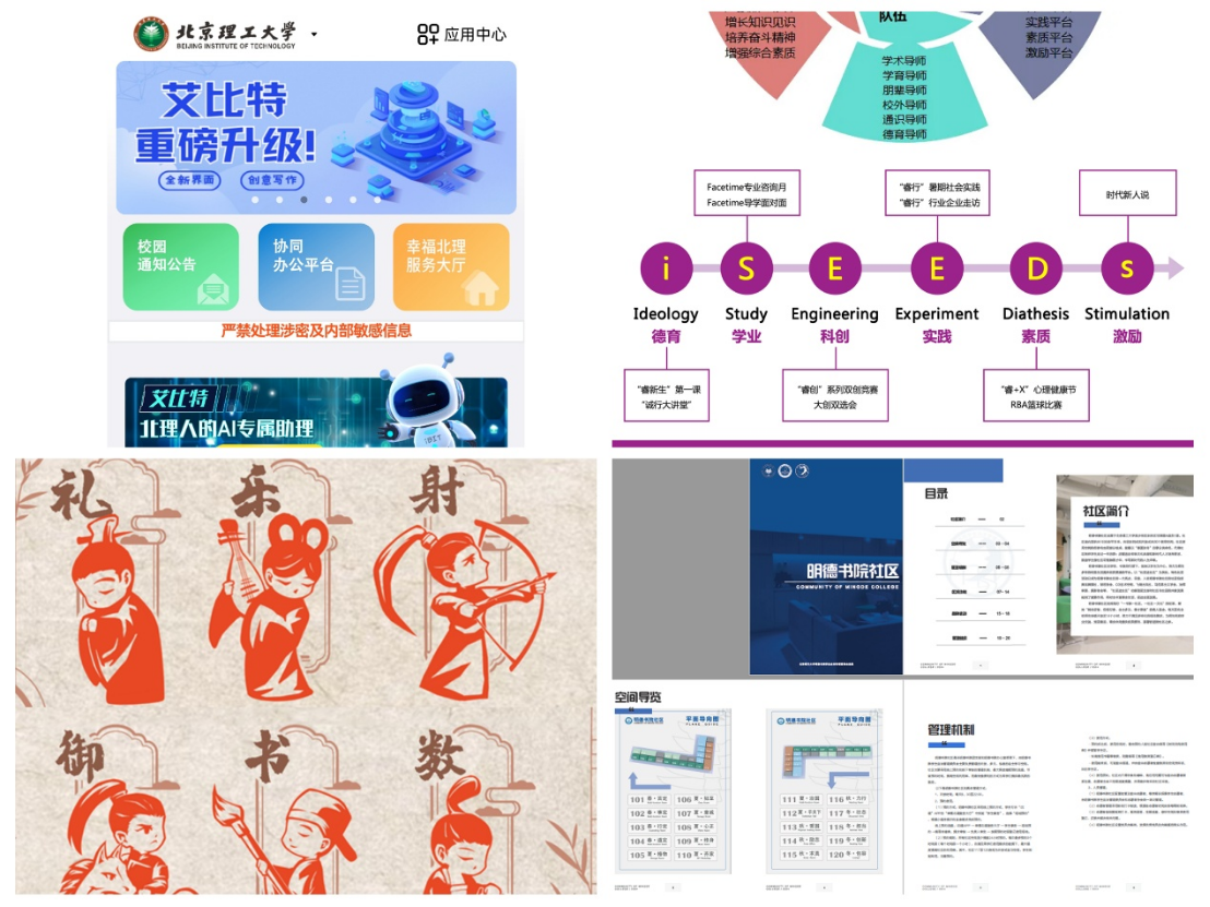 书院社区持续深化“智慧北理”建设,充分利用传统媒介、新媒体平台等,打造全方位文化传播格局。明德书院社区借助《明·德》杂志与《社区导览手册》等平面设计成果,以深度内容与实用信息展现育人成果与文化内涵。书院社区依托各书院微信公众号等构建新媒体矩阵,及时广泛发布资讯、展示成果、传播文化与价值观念。学校AI专属助理“艾比特”上线以来,已为全校师生打造了多个AI应用场景和工具,推动人工智能全员、全过程、全方位赋能,进而构建起“线上+线下”全覆盖的文化传播网络,将书院社区建设成信息收发的集中平台,更是文化交互的前沿阵地。