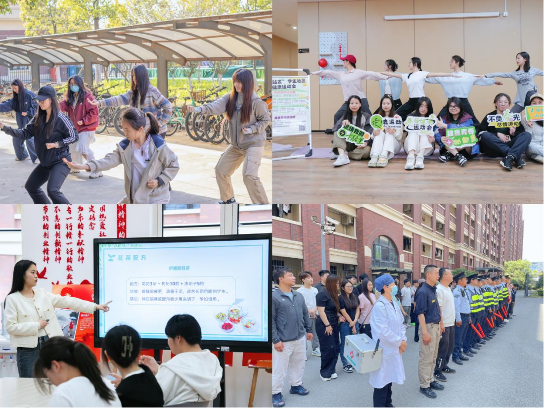 我校以促进学生全面发展为根本目标,深度挖掘体育思政育人资源,打造体教融合、身心共育的社区发展育人体系。一是推广八段锦、太极拳等中华优秀传统养生运动,在强身健体的同时实现文化传承;引入瑜伽、健美操等现代健身项目,助力学生调节身心,培养团队协作意识,让传统与现代运动碰撞出健康活力。二是举办春日趣味运动会、心理冥想工作坊等特色活动,以寓教于乐的方式关注学生身心健康,促进身心和谐发展。三是定期开设消防演练、反诈科普、寝室安全、健康保健等安全微课堂,将安全知识与健康理念融入日常教育,切实提升学生自我保护能力,筑牢社区安全防线。