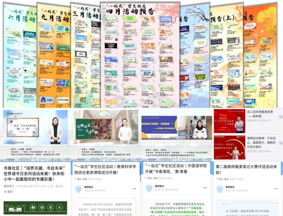 四是以交互为桥梁,激活网络文化的表达生成力。学校持续完善以“南师学工”公众号、微信视频号、易班、微博等为核心的“书香南师”融媒体宣传矩阵,围绕重点书目、阅读活动和主题教育发布内容,打造“一站式”学生社区专属活动预告栏,营造线上线下联动的传播氛围。为激发学生数字化表达的创造力,常态化开展书香文化新媒体作品征集与评选活动,鼓励学生通过短视频、海报、配音、导读等多种形式创作文化作品,推动书香文化“可表达、可传播、可共鸣”。同时,结合时代主题与阅读内容,开发富有价值引导的100节“社区金微课”与100节慕课资源,引导学生在学习中强化家国情怀与时代担当,推动思政教育在书香文化中润物无声、生根发芽。