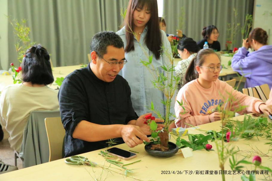 自入驻社区以来,彩虹课堂开发相关课程20余门,依托“彩虹学馆”开展面向校内学生的艺术体验第二课堂,包括以拼贴画、水拓画为内容的艺术疗育课程,抚平大学生焦虑情绪;以扎染、篆刻、编织为内容的非遗传承课程,传播中华传统文化,增强文化自信;以扭扭棒、衍纸、皮革为内容的手作体验,感受心手合一;以ps、国画、油画、版画、书法等为内容的美术专业教学课程,提升艺术素养,让学生在生活社区里就能感受艺术、疗愈心灵、提升能力。至今,彩虹艺术课堂累计开展130余次艺术体验课程,参与人数超过11000人,服务时数超过4500小时。