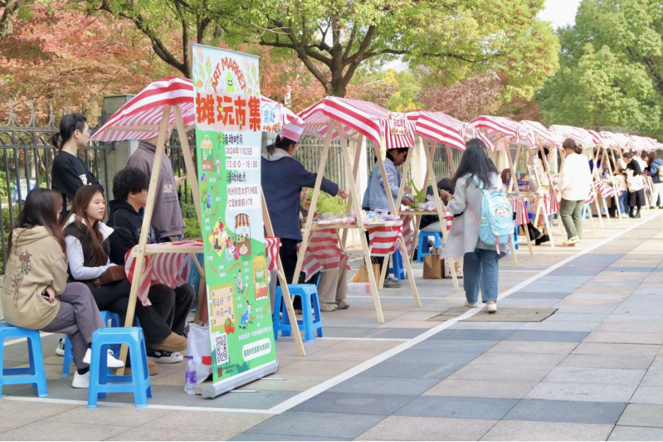自2017年起,彩虹课堂每年为来自不同国家的留学生开展艺术课程,传播中国传统艺术的魅力,用艺术构建跨文明对话的深层实践,使一站式学生社区更加 “国际范儿”。彩虹课堂还将艺术体验活动从“彩虹学馆”搬到广大校园,定期举办“摊玩”艺术集市,鼓励学生将自己的创意想法和艺术作品打造成个人品牌,通过贩卖和交换的商业方式,促进学生创新意识,打造校园艺术新生态,形成大学生社群中独特的文化景观。
