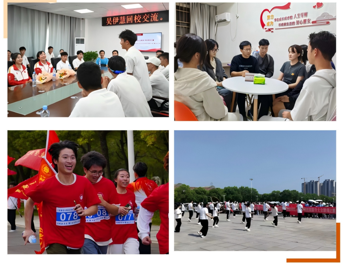 聚焦学生身心健康,社区以“三强”为措施,不断丰富文体活动,强化学生身心素质。一是营氛围,强理念。邀请奥运冠军、世界冠军等在籍体育名人进社区开展健康运动知识讲座等,引导学生向榜样看齐,树立“我运动、我健康、我快乐”理念;二是重预警,强心理。针对当前大学生心理状况,完善“校—院—班—寝”四级预警网络,在社区建立心理驿站,定期开展心理文明健康教育工作,构筑心理育人工作合力。三是办活动,强身体。开展阳光体育活动月活动,打造校园健康跑、跳绳比赛、团结杯新生球赛等校园品牌体育活动,推动90%以上学生走出寝室、走下网络、走向操场,让学生在运动中享乐趣、强体质、锤意志。