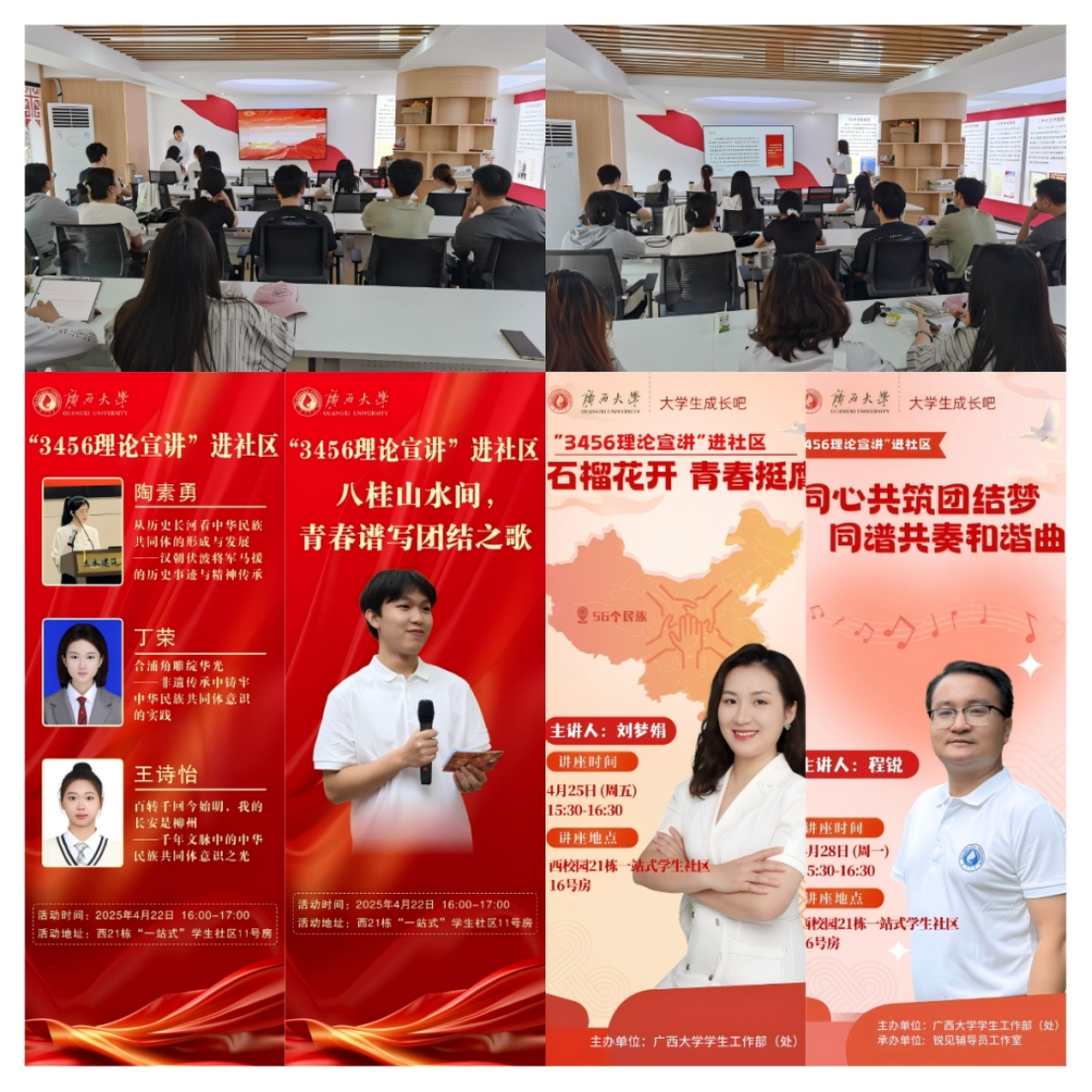 广西大学通过“1+2+3+N”模式,在“一站式”学生社区构建起“理论武装有深度、文化浸润有温度、实践育人有力度”的民族团结文化育人生态,被命名为自治区民族团结进步示范区示范单位。未来,学校将以学生社区为主阵地深化铸牢中华民族共同体意识教育,持续完善 “一站式”学生社区综合管理模式,推动各民族学生在社区中同吃同住同学习、共建共享共成长,让民族团结的种子在社区土壤中深植厚培,使学生社区成为各民族青年交往交流交融的精神家园,在八桂大地续写“中华民族一家亲、同心共筑中国梦”的社区文化建设新篇章。