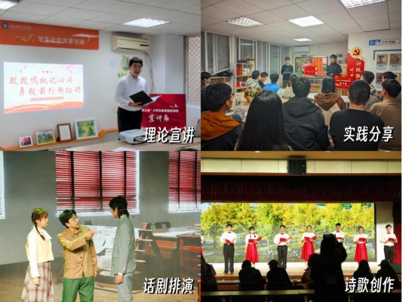 依托“5月的向日葵”辅导员工作室,推动“信仰之光”大学生新思想宣讲团、“星光”大学生红色文化原创剧社等学生组织入驻“一站式”社区,打造“移动的宣讲角”、“红色文化传播角”等特色活动。深挖党史学习资源、成电建校中的红色故事,开展“中国共产党人精神谱系”理论宣讲120余场,实现党团支部、新生年级全覆盖,推动党的创新理论入脑入心。将党史与校史院史、学科发展史、专业发展史相结合,常态化组织开展红色诗歌创作、红色影片赏析、红色剧目配音、红色话剧演出等活动20余场,增强沉浸体验、激发情感共鸣。
