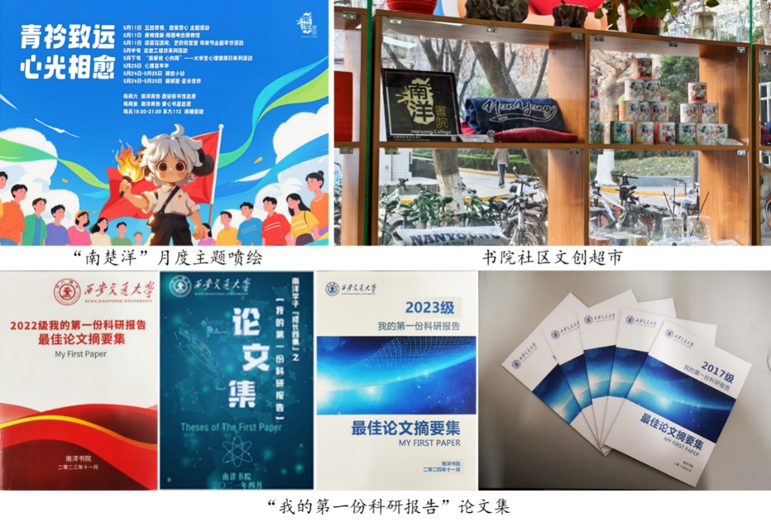 一是以IP形象紧密情感联结。通过文创大赛,构建学生设计、师生评选、实体转化的全流程机制,打造学生推选的IP形象“南楚洋”及月度系列主题海报、数字成长萌宠、表情包等,形成“符号认知-情感共鸣-文化认同”的递进式育人路径。二是以双创支持建立阶梯培养。开设新生养成九维教育,实行科学家精神启蒙工程,开设“我的第一份科研报告”课程,引导学生了解学科前沿、行业前景,学习方法技能等;组织各类科创活动,激发学生学术志趣、孵化科研志趣;建设“学而立”辅导员工作室,分年级开展学涯、生涯规划活动。三是以目标驱动创新激励机制。推行书院社区文创超市与星愿卡兑换模式,依托学生自设目标,建构师生心灵契约,目标实现后可累计兑换社区文创产品,形成活动参与、成长记录与学分转化的闭环管理;不断丰富“西交学生智慧社区”数字平台,实现“跨场景融合”的隐性育人,生成“一站式学生社区成长档案”“趣味成绩单”,使文化成长转化为新时代“一站式”学生社区育人场域的新质供给。