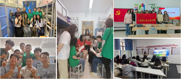 “9号室友”坚持党建引领做好新生入党启蒙教育,做到“早启蒙、全覆盖”。一是孕育红色信仰,为新生赠送红色书籍见面礼,开展“红色观影”“红色阅读”等活动,以自身入党历程、学习心得和成长故事强化引导;二是传播青年声音,加入“紫翎”“林音”“青芊”等学生宣讲团,围绕理想信念教育与生态文明教育两条“红绿相映”主线,开展不同主题的微课宣讲,累计覆盖7000余人次;三是完善机制保障,主动担任新生入党积极分子的培养联系人,为新生做好从端正入党动机到培养考察发展,从政治理论学习到先锋作用发挥的“全程引导”。