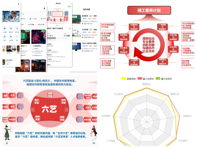 一是品牌培育,打造学生发展“素养沃土”。各书院社区结合学生学科特点,精心打造育人品牌,精工书院社区推出“精工素养计划”,打造“精工创研计划”“精思大讲堂”等活动,年均参与2000余人次;明德书院社区推出“六艺”课程体系,以传统人文素养融合现代教育场景,年参与6000余人次,各书院社区均建成特色鲜明的育人品牌体系。