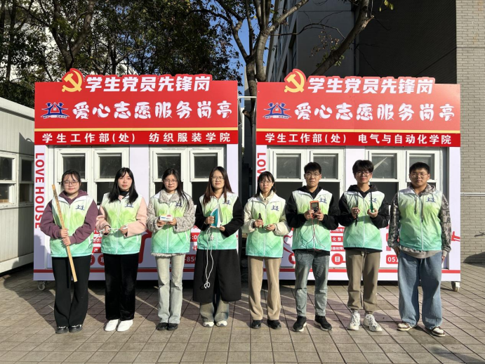 学校以“服务链融合”为抓手,打造“志愿服务+专业赋能+文化创造”的实践矩阵,让学生在多元场景中实现自我价值。将原有的核酸采样亭改造为“爱心志愿服务岗亭”,组建“匠心维修队”等12支专业志愿服务队。纺织服装学院学生利用专业技能,年均提供衣物缝补、熨烫服务2300余人次;电气与自动化学院学生组成“小家电维修队”,累计修复故障电器1800余件,服务覆盖6570间宿舍。