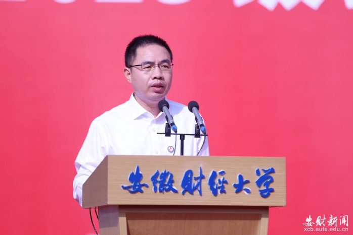朱红军以“与光同尘 风帆再扬”为题,为2025级新生讲授开学第一课。他热烈欢迎来自全国各地的新同学们加入安财大家庭。他说,安财是一所把“家国”融进底色的学校;是一所把“务实”写进基因的学校;也是一所把“烟火”留在日常的学校。对于每一位新同学来说,安财将是求学问道、破茧化蝶的全新起点;是探索前沿、蜕变升华的绝佳时机;更是享受青春、绽放卓越的璀璨舞台。新的人生征程即将启航,朱红军以“追光”为题,以“过来人”和“同行者”的角色,向2025级新生提出了三点期待:一是追寻理想之光,立有为之志,担时代之责;二是追寻智慧之光,立勤学之志,答未来之问;三是追寻奋斗之光,立笃行之志,写人生诗行。他希望同学们,牢记习近平总书记的殷殷嘱托,不负时代韶华,在青春路上坚定做自己的追光者,用持续的小进步积淀人生光芒,努力书写为中国式现代化挺膺担当的安财青春篇章。