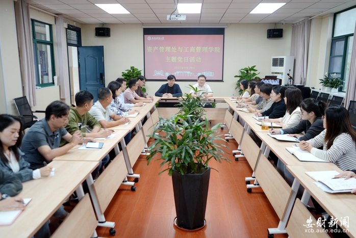 9月28日上午,资产管理处党支部与工商管理学院教工党支部联合开展“党建引领聚合力 业务共话促发展”主题党日活动。工商管理学院党委书记黄铁流主持会议,资产管理处全体党员和工商管理学院行政人员、辅导员参加会议。