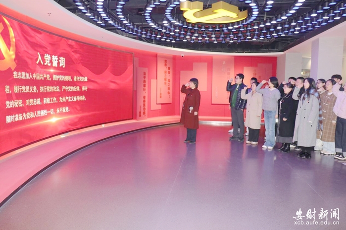 在庄严肃穆的宣誓厅,面对鲜红的党旗,全体党员在叶帆的带领下重温入党誓词。“我志愿加入中国共产党……”誓言铮铮,回荡厅堂,不仅是对初心使命的铭记,更是对严守党的纪律、永葆清廉本色的庄严承诺。叶帆在宣誓后强调,全体纪检委员们应将遵规守纪内化为日用而不觉的言行准则,把廉洁自律转化为干事创业的行动自觉;要切实履行监督职责,敢于较真碰硬,在执纪问责中体现严管厚爱,在教育预防中彰显制度温度,共同维护学院风清气正、崇廉尚实的良好政治生态和育人环境。