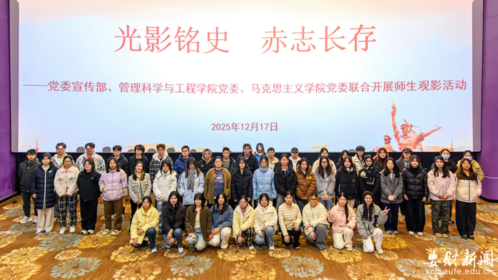 厚植师生爱国主义情怀,赓续红色精神血脉,筑牢理想信念根基。12月17日,安徽财经大学党委宣传部、管理科学与工程学院党委、马克思主义学院党委联合举办“光影铭史 赤志长存”红色观影主题教育活动。支部师生代表齐聚一堂,循着银幕光影回溯烽火连天的峥嵘岁月,感悟平凡英雄深藏于心的家国担当与民族大义。