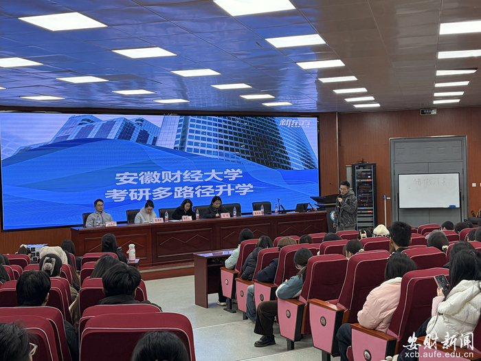为护航期末备考、擘画学业未来,12月17日下午,财政与公共管理学院在博文楼报告厅举办第九期“我与书记面对面”双线赋能主题班会活动。本期活动以“守诚笃行,心向未来”为核心理念,聚焦“诚信备考”与“升学规划”两大专题。新东方专家团队,学院辅导员、党支部书记代表及百余名学生齐聚一堂,共话成长。活动由税收学第二党支部书记陈保玲主持。
