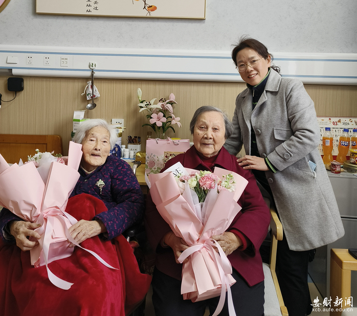活动次日上午,离退休工作处处长徐翠平前往看望慰问我校两位百岁老人唐佩芬老师、方家兰老师,带着芬芳美丽的鲜花、精心制作的螺钿胸花、暖心的节日礼物,为她们送去真挚美好的节日祝福。两位老人分外激动开心,表达了对学校发展的美好祝福。