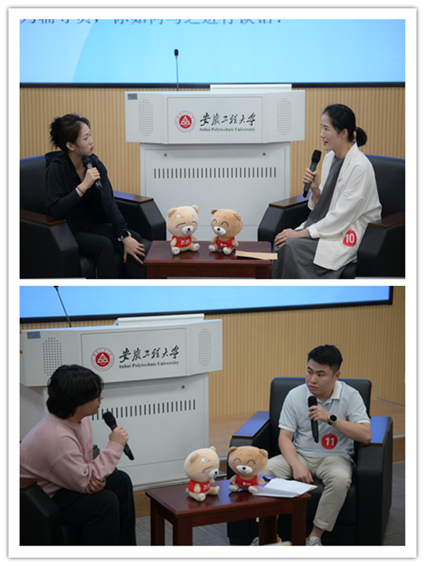 决赛的项目是谈心谈话。谈心谈话主要考察辅导员对学生特征、学生成长成才规律的了解把握程度,对学生的教育引导能力、解决理论困惑和实际问题的能力等。整场比赛主题鲜明、内容丰富,贴近辅导员工作实际,参赛选手展现出了扎实的理论水平、过硬的业务能力、卓越的育人本领和专业全面的职业素养。