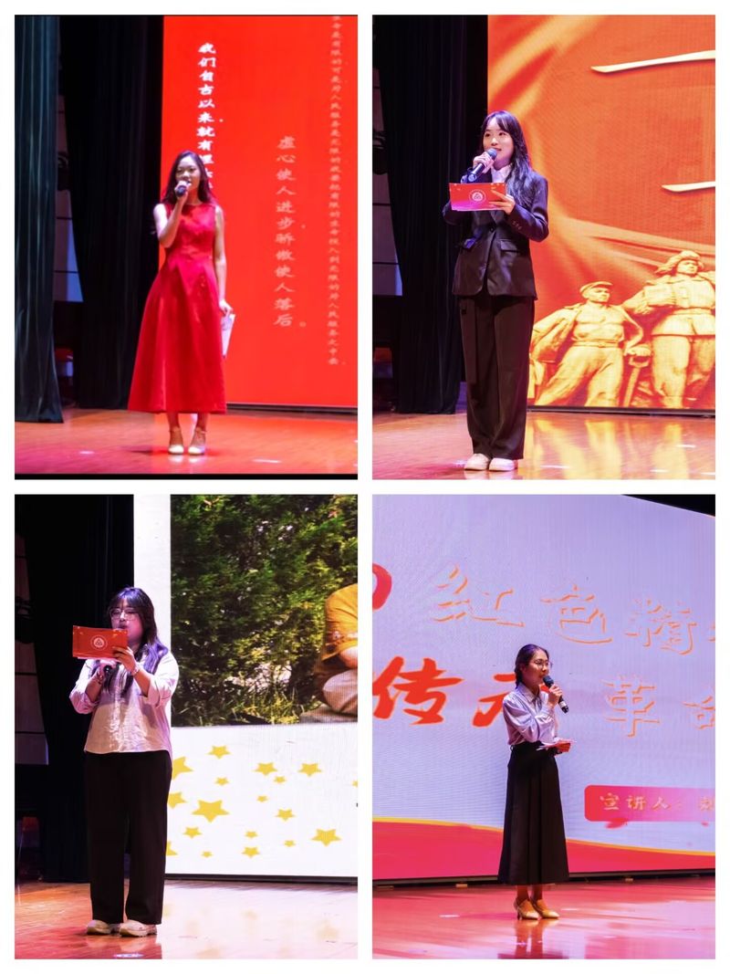 在理论宣讲环节,机械与汽车工程学院刘欣雨以“青年说信仰”为主题,诠释了红色精神的时代价值;体育学院杨可以《一颗未寄出的糖一座长明的灯塔》为题,从平凡视角讲述了战斗英雄李家发的感人事迹;人工智能学院贾一诺在“青年说校史”中,生动回顾了学校九十载砥砺前行的发展历程;人工智能学院孙安娜通过“青年说榜样”,展现了身边的先进典型与榜样力量。