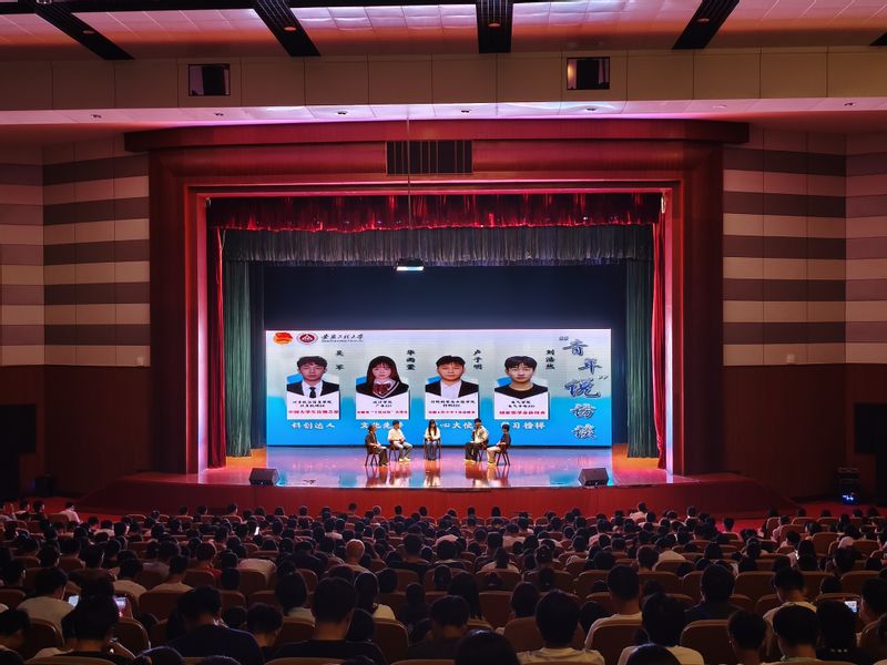 “青年说”访谈环节将整场活动推向了高潮。中国大学生自强之星吴军、安徽省“十佳百优”大学生华雨萱、校十佳志愿者卢子明、国家奖学金获得者刘浩然围坐畅谈,分别从自强精神、文艺情怀、志愿服务和专业学习等方面,为新生送上实用“成长锦囊”。