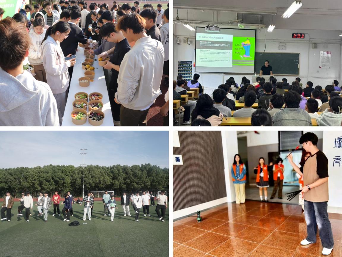各学院结合学科优势,打造了一系列特色鲜明的体育活动,为体育文化月注入了新的活力。生物与食品工程学院推出“我的体重焕新季”活动,涵盖减脂餐创意工坊、体重管理知识竞答和趣味运动闯关三大环节,推动饮食健康与体育锻炼深度融合。设计学院开展寝室PK赋能活动,为新生搭建了交流互动、增进友谊的平台。集成电路学院启动“‘芯’青年——21天强体挑战”,邀请专业教练量身定制锻炼计划,辅以科学饮食指导,构建健康促进新模式。机械与汽车工程学院“毽舞飞扬,荧光夜跑”、建筑工程学院“无色彩,不青春”彩虹跑等活动,吸引学子走出宿舍、拥抱运动,将“每天锻炼一小时,健康生活一辈子”的理念深入人心。纺织服装学院以“青春跃动绽芳华,活力赛场燃金秋”为主题,打造了一场综合性体育文化盛会。
