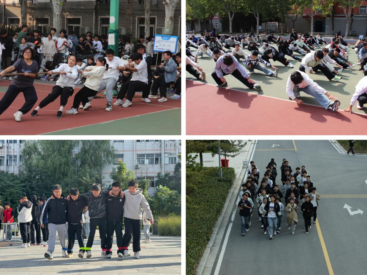以“轻竞技、重体验、强互动”为核心理念的趣味运动类活动,成为校园中一道亮丽的风景线。材料科学与工程学院举办的趣味跑活动设置猜拳、沙包投掷、趾压板跳绳等多个环节,绑腿跑项目中队员们肩并肩、心连心,默契前行。数理与金融学院陆续开展荧光夜跑、宿舍撕名牌、拔河比赛等活动,学子们在奔跑与对抗中释放青春活力。化学与环境工程学院 “‘趣’享运动,‘味’你呐喊” 趣味运动会、经济与管理学院“与国同庆 运动同行”国庆漫跑活动巧妙融入红色教育元素,使学生在体育运动中重温革命历史、感悟奋斗精神。外国语学院的“乒乓运输”“背夹运气球”、人文学院的“金鸡接力”“气球保卫战”等项目,既营造了轻松愉快的氛围,也增强了集体凝聚力。电气工程学院 “月跑”活动、计算机与信息学院 “一班一棒,接力九秩薪火 百公里路,毅启时代篇章”活动、体育学院“三走”趣味运动会等,积极引导学生“走下网络、走出宿舍、走向操场”,践行健康生活理念。人工智能学院“乐玩徽程”系列活动帮助学生在互动中发现校园之美、增强团队协作能力。