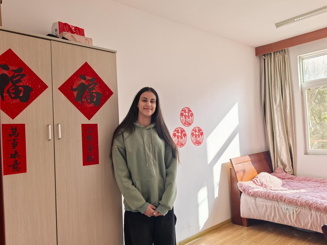 寝室文化节:宿舍里的东方韵味。留学生用春联、灯笼、窗花等传统元素将宿舍楼装点得焕然一新,仿佛一条充满东方韵味的文化长廊。利比里亚留学生贾思博将中国剪纸与非洲传统图案完美结合,展现了文化交融的无限可能。装饰一新的留学生寝室成了一道亮丽的校园风景线,它们不仅传递着喜庆祥和的节日氛围,更见证了中外文化交流的温暖与美好。