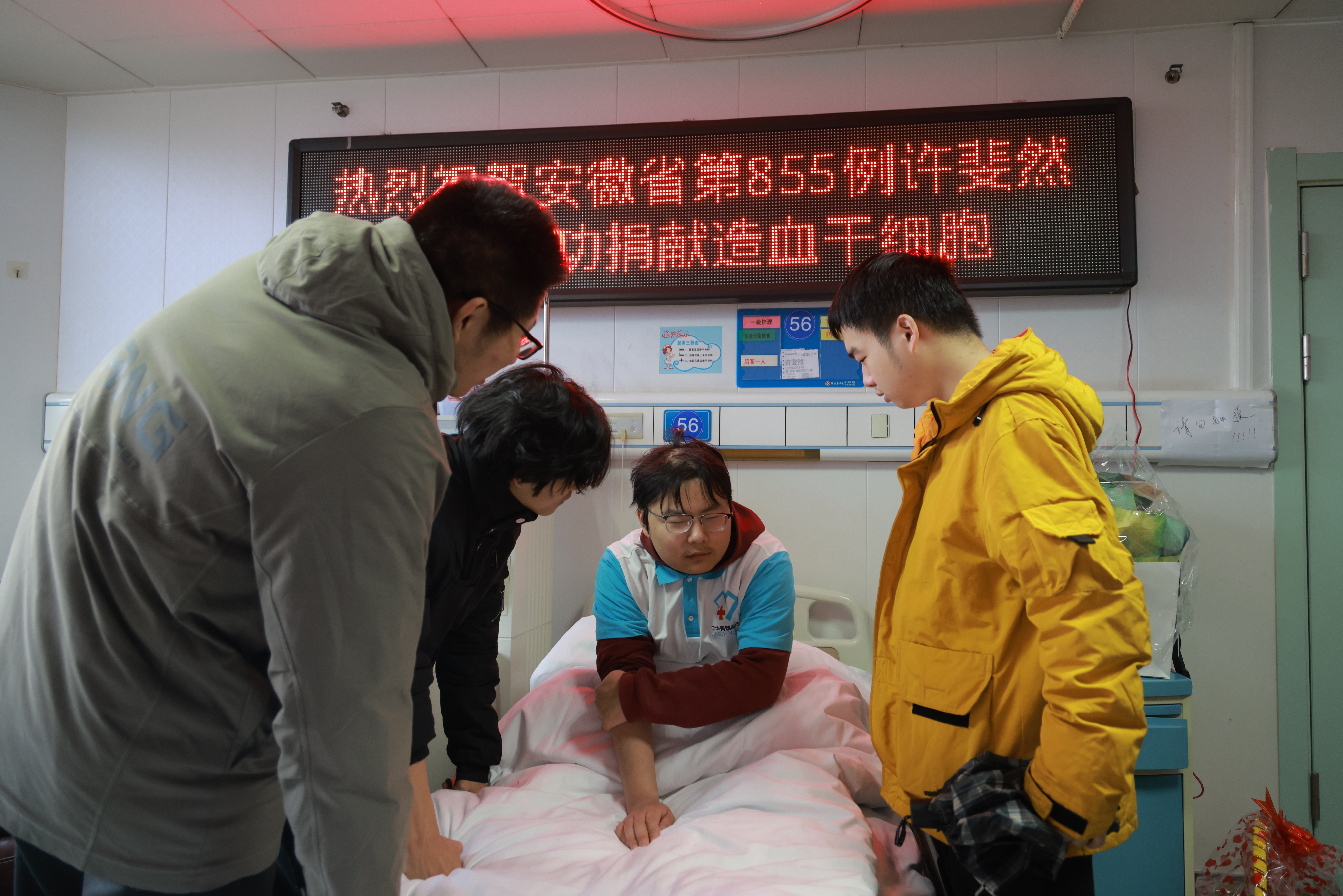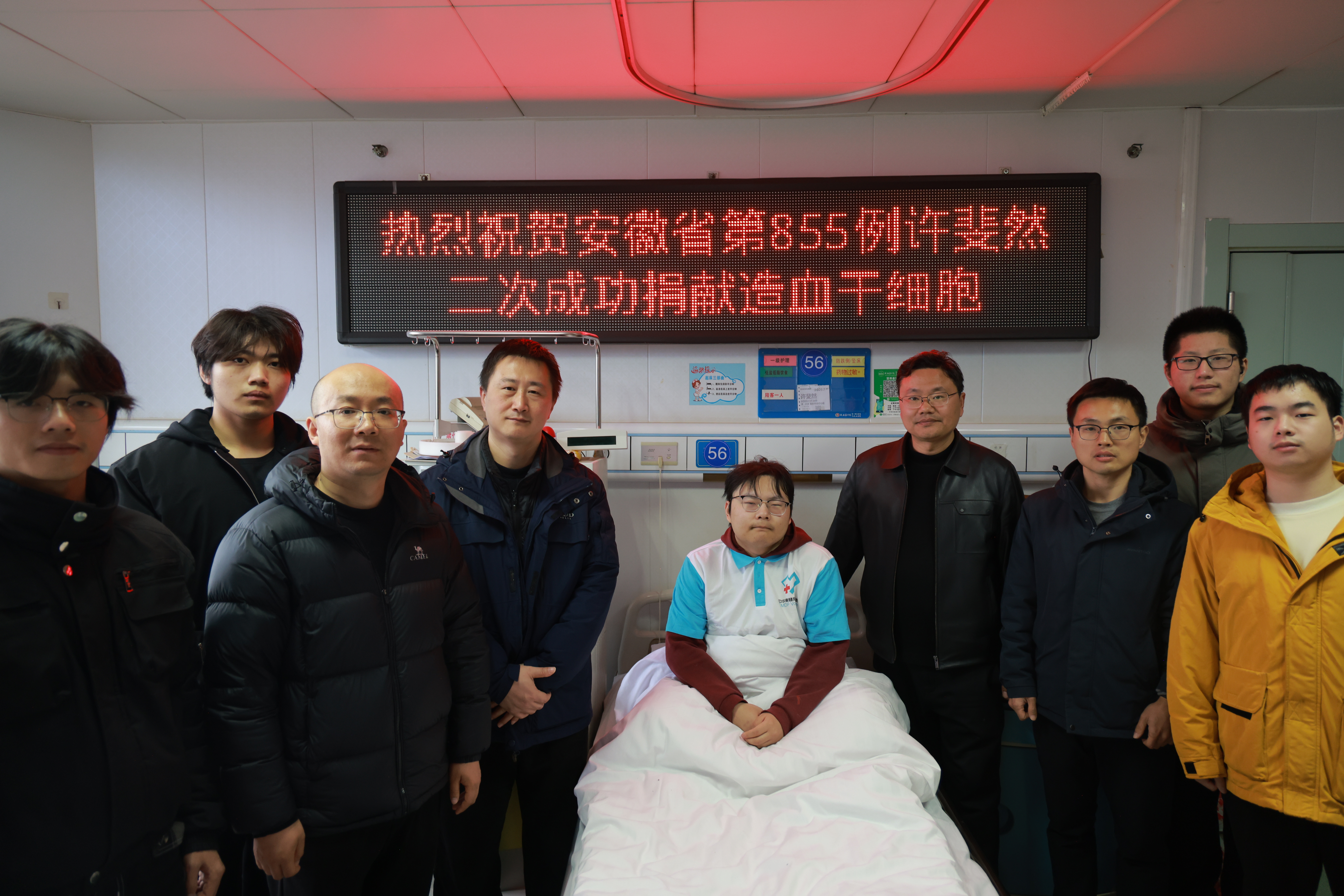 “你是安徽省第855例捐赠、芜湖市首位二次捐献造血干细胞的志愿者!真了不起!”“你不要担心课程,老师和同学会一起帮你补习,你好好休息就行。”……3月16日上午10点30分左右,150毫升造血干细胞混悬液从我校机械与汽车工程学院大三学生许斐然身上抽取完毕,他的老师和同学在一旁鼓励和关心着。这是继去年3月第一次捐献后,许斐然再次为同一位血液病患者伸出援手。
