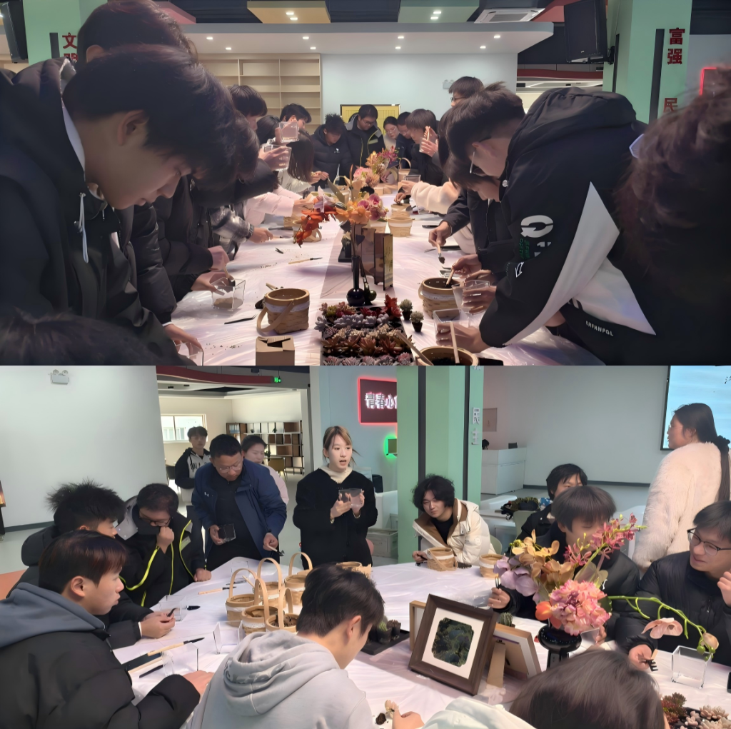 活动期间,同学们纷纷动手实践。从精心挑选花盆、填放营养土,到小心翼翼地栽下每一株嫩苗,再到最后浇上定根水,每一个步骤都倾注着同学们的专注与期待。活动现场气氛热烈,欢声笑语此起彼伏。一盆盆亲手栽种的绿植,不仅为寝室增添了清新的点缀,更成为了同学们感悟生命、寄托情感的伙伴。