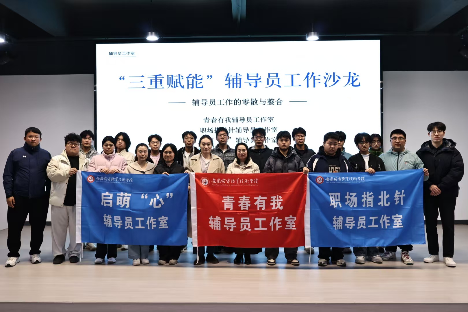 为加强辅导员工作室之间的经验交流,提升辅导员队伍专业素养和综合素质,12月11日,“青春有我”辅导员工作室主持人邵洋、启萌“心”辅导员工作室主持人邹传娟以及“职场指北针”辅导员工作室主持人马经纬在耘曦社区联合举办辅导员工作的零散与整合——“三重赋能”辅导员工作沙龙。本次活动特别邀请了“微光”辅导员工作室主持人吴帅、“雨耕青年”辅导员工作室主持人曹群、“电气青年”辅导员工作室主持人朱伟伟和30名学生代表参与。