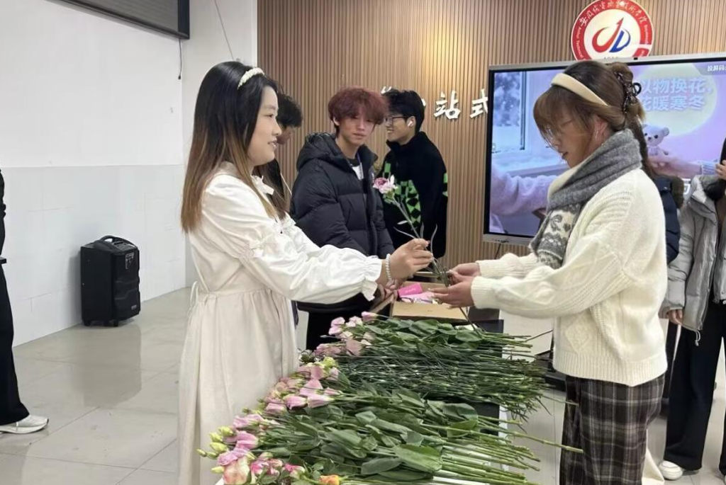 一缕花香,一份祝福。一位参与者在祝福卡上写道:“旧物承载记忆,鲜花寄托希望。愿这份温暖如网络信号般,在人与人之间无限传递。”这场别开生面的公益活动不仅实现了物品的循环利用,更在校园中构筑起一座情感交流的桥梁,让这个冬日充满别样的温情与感动。