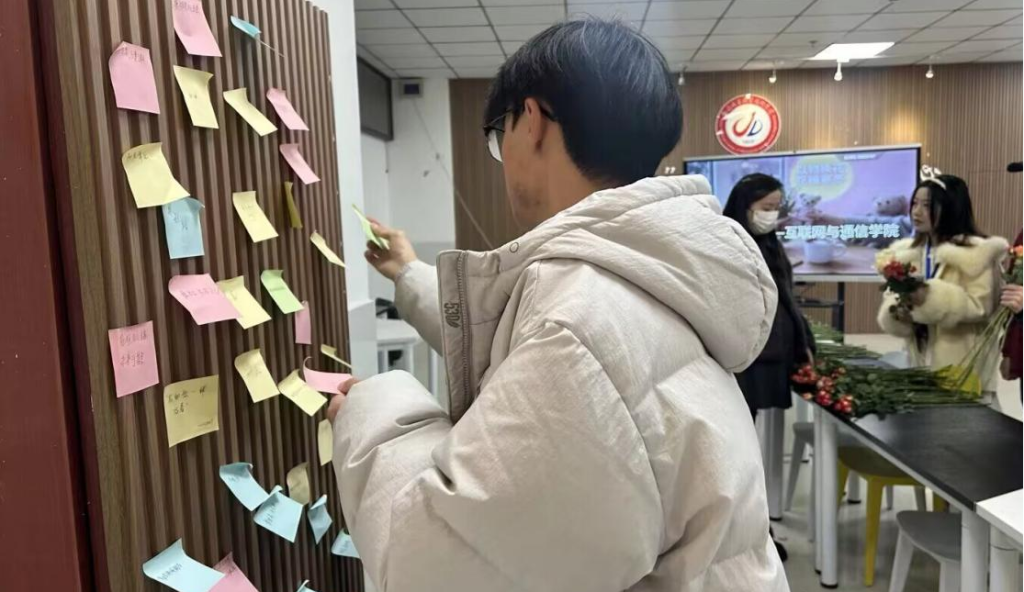 “我用陪伴我度过专升本的日记本换了一枝花。”2023级工业互联网技术专业学生胡文亮表示,“本子里记录了我的迷茫与成长,现在把它‘交给’活动,就像把一段记忆封存,而这枝花又给了我新的希望。”活动现场,不少学生在展台前仔细阅读他人写下的祝福,感受着陌生人之间的温暖互动。