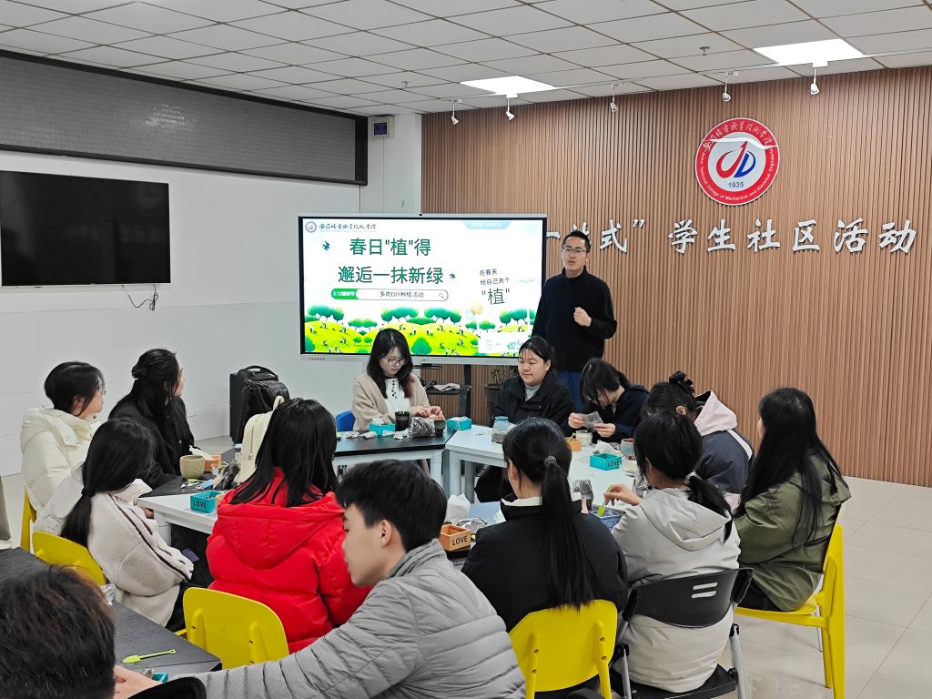 为迎接我国第48个植树节,积极践行绿色发展理念,丰富学生课余文化生活,3月12日,工商管理学院在“一站式”学生社区活动中心开展“春日‘植’得,邂逅一抹新绿”多肉DIY种植活动,学院分团委书记章建业及30余名学生参与。