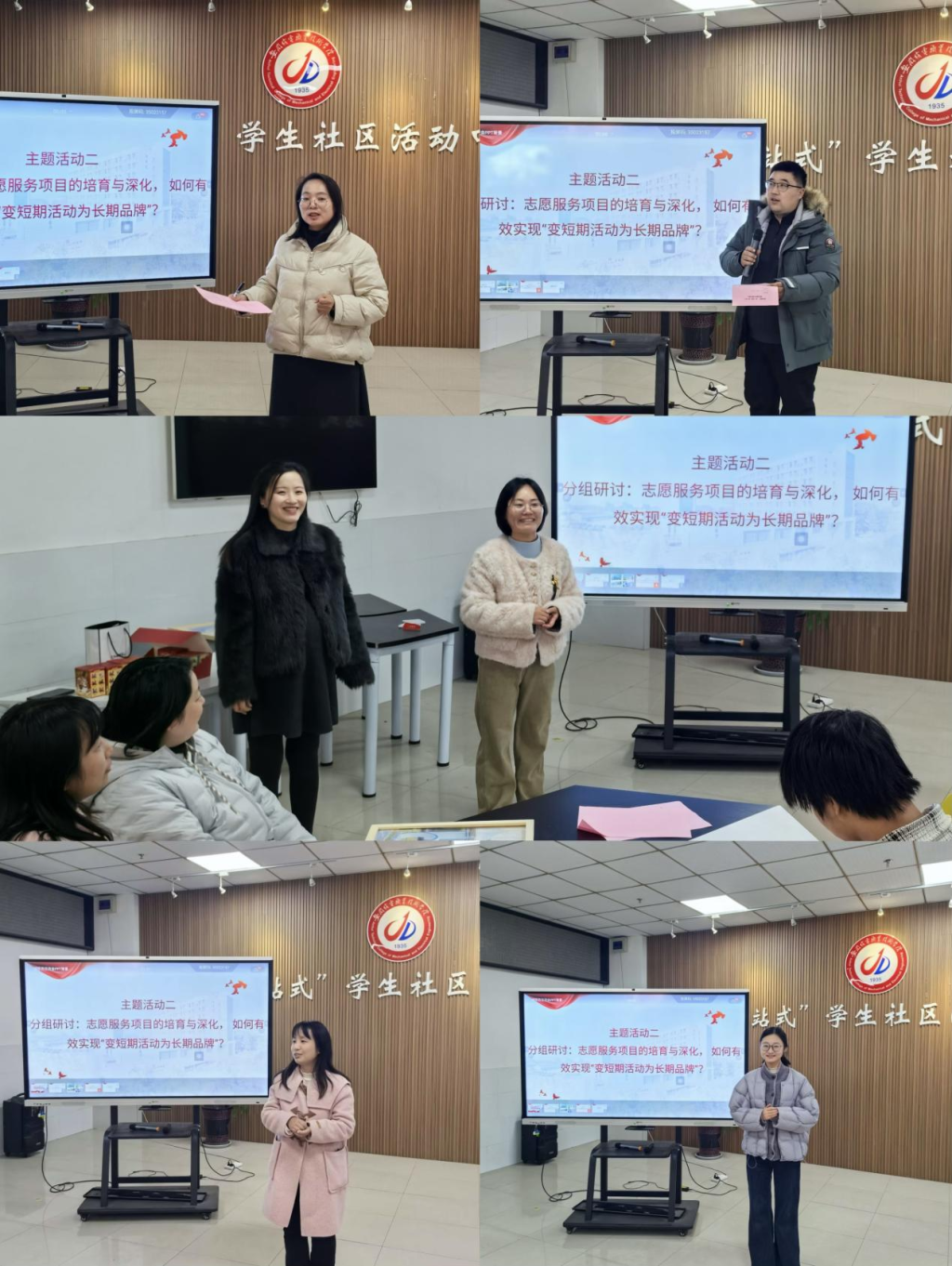 随后的主题交流环节聚焦如何将短期的志愿服务活动,系统培育成为可持续、有影响力、能育人育心的长期品牌项目这一核心议题。各小组依次分享了本组讨论形成的核心策略与建议,内容涵盖项目品牌化设计、校内外资源整合、学生主体性激发、育人成效评估与成果固化等多个维度,提出了诸多具有前瞻性和操作性的实践思路,充分展现了辅导员队伍在实践基础上的深刻思考与育人智慧。