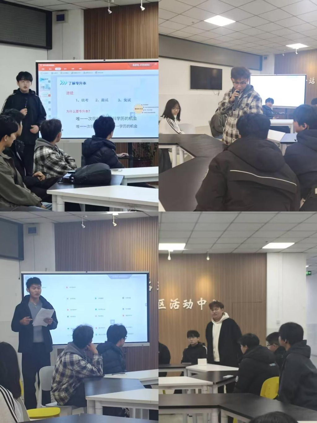 分享会上,四位同学结合自身经历,从不同升本路径出发,为同学们带来了干货满满的经验分享:王鑫分享了退役士兵专升本的报考条件、政策优势及备考规划,详细讲解了入伍经历如何助力专项升学通道,为有意向参军的同学提供了清晰指引。李昊围绕职业技能大赛升本展开介绍,解读了国赛、省赛获奖对应的免试或加分政策,分享了备赛与升学兼顾的实用技巧,鼓励同学们以赛促学、提升专业竞争力。叶骞聚焦成人学历类专升本与报考机构选择,分析了自考、成考等非全日制升本路径的特点,提醒同学们辨别机构信息、理性规划提升路径。张杰平则分享了统招专升本的备考经验,从报名流程、科目复习、时间管理到心态调整等方面逐一拆解,为应届考生梳理了高效备考的核心要点。