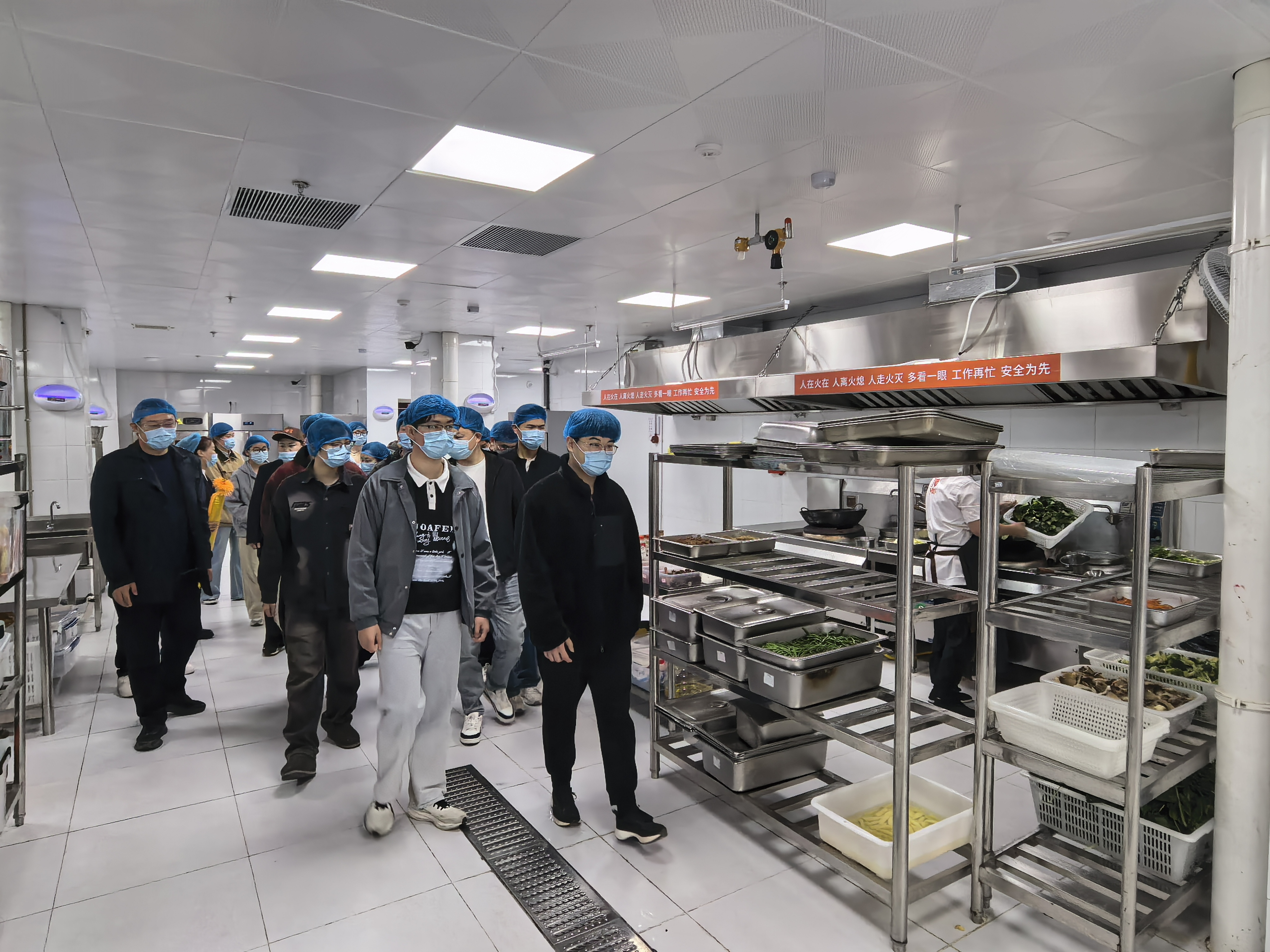 交流会结束后,与会学生代表实地参观了学校新建食堂运营管理与食品安全保障流程,“零距离”参观食材的采购、清洗、切配、烹饪、留样等环节。同学们表示将珍惜学校及餐饮服务企业提供的优质、便捷、安全的学习生活条件,努力学习,追求进步,不负学校和捐赠企业的期盼。