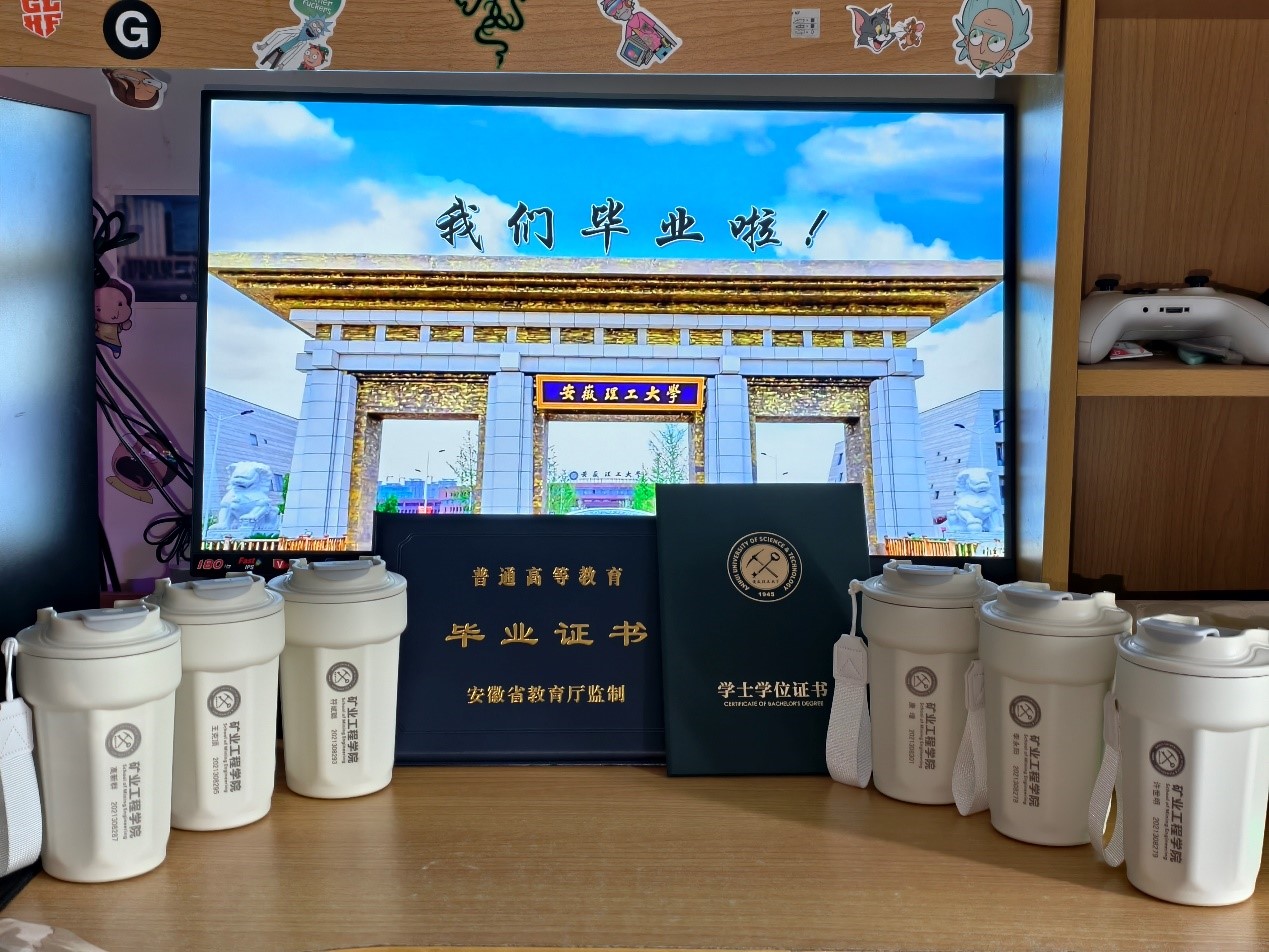 6月12日,“青春答卷,未来可期”毕业生最后一次主题班会在天工105教室温馨开展。辅导员精心准备了大学四年的影像集锦,从军训合影到实验室奋斗场景,从校园活动到实习经历,每一帧画面都勾起集体回忆。学生代表分享成长故事,辅导员送上临别寄语,“愿你们带着矿业人的坚韧,在更广阔的天地发光发热”。班会现场,学院为每位毕业生精心准备了定制纪念水杯与纪念册:水杯印刻校徽、学院名称与姓名学号,纪念册收录校园风光、师生合影及专业寄语,成为承载青春记忆的专属信物。此次班会以暖心仪式传递学院关怀,让毕业生在承载期许与回忆中,扬帆奔赴人生新旅程。