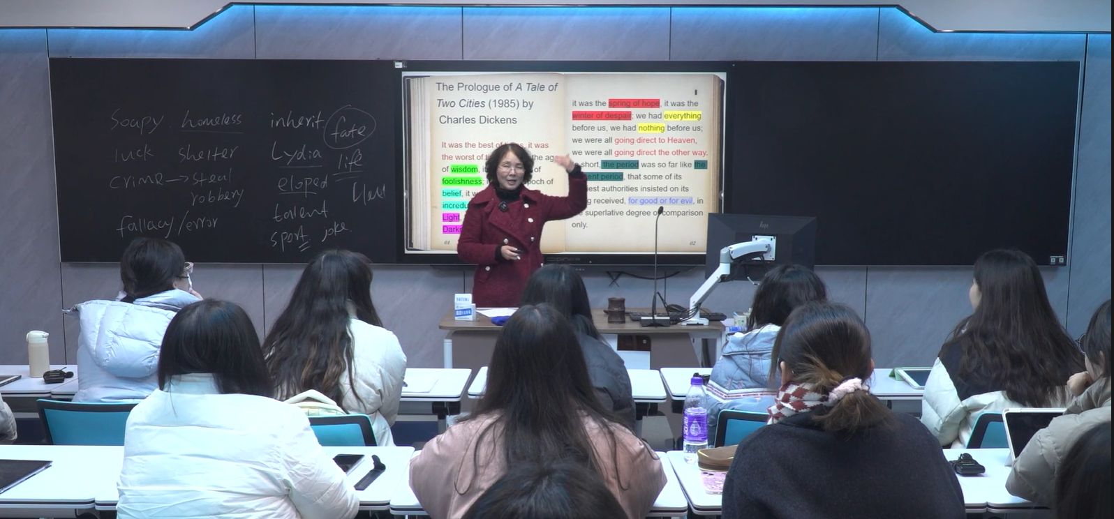 韦虹在课堂教学中,始终探索多元、有趣、亲和的授课形式。她认为,“老师在积累丰富经验的同时,也要注重与时俱进,强化传授专业知识的时代性和趣味性。”在讲解诗歌格律时,因担心一些专业知识单一枯燥,无法引起学生兴趣,她便常常有意先将专业知识与日常生活关联起来,以此吸引学生的注意力,营造一个兴趣盎然的课堂氛围,进而详细介绍分析专业知识点。她以轻松的方式传授专业知识,以有趣的故事启发学生思考,帮助他们熟悉外语的语境及形成习惯。对此,她坦言道:“做一个温暖的老师很重要。在对学习有畏难情绪且容易焦虑的学生面前,作为教师的我们需要给同学们带去温暖,多引导他们,让他们更好地体会到学习的乐趣。”