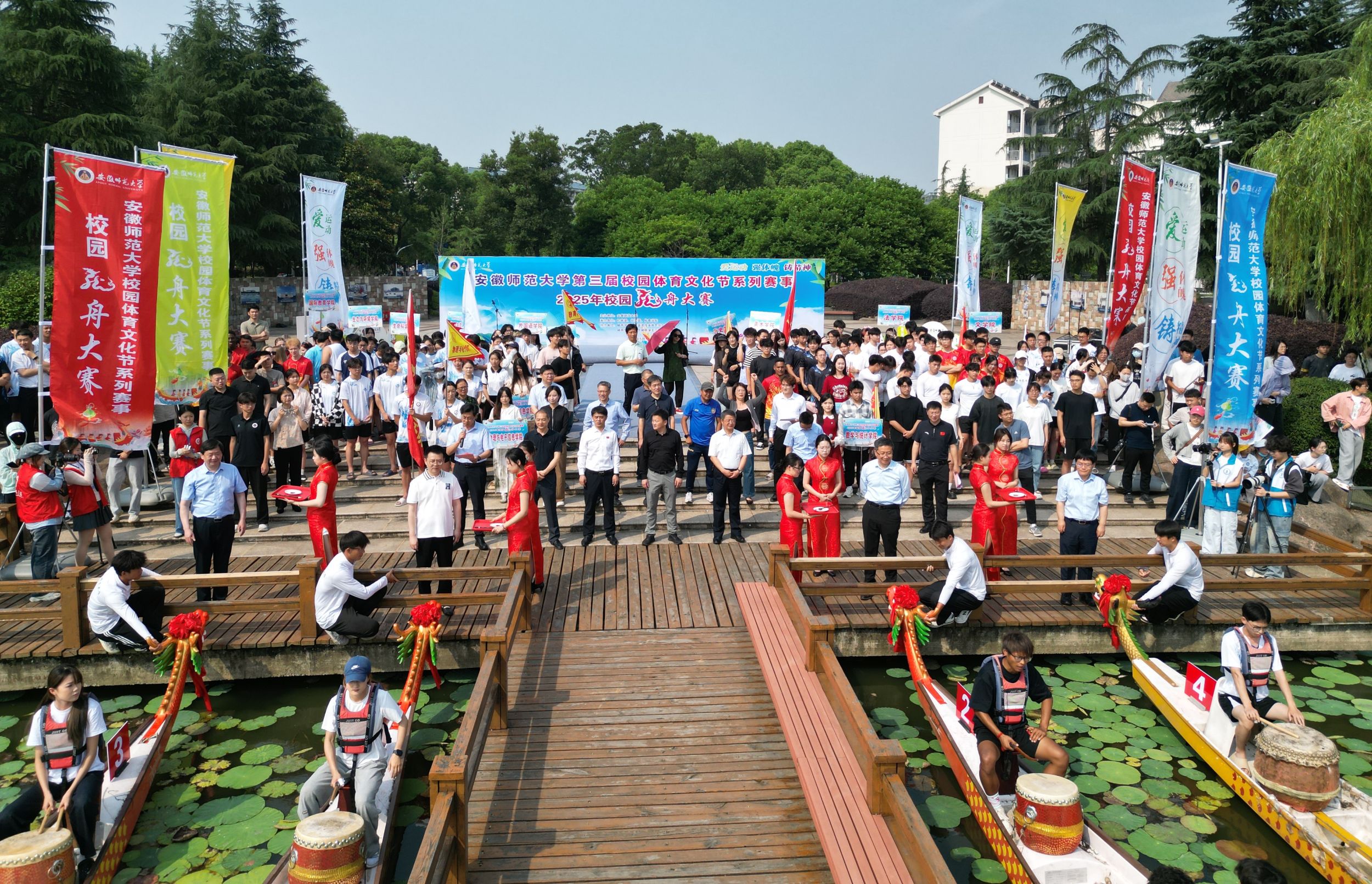 碧波荡漾,号子铿锵。5月25日,安徽师范大学2025年校园龙舟大赛在花津校区花津湖火热开赛。比赛以学院为单位,来自全校19个学院的20支队伍共计280名运动员同场参与混合组12人龙舟200米直道赛竞速,共同领略龙舟文化的独特魅力。