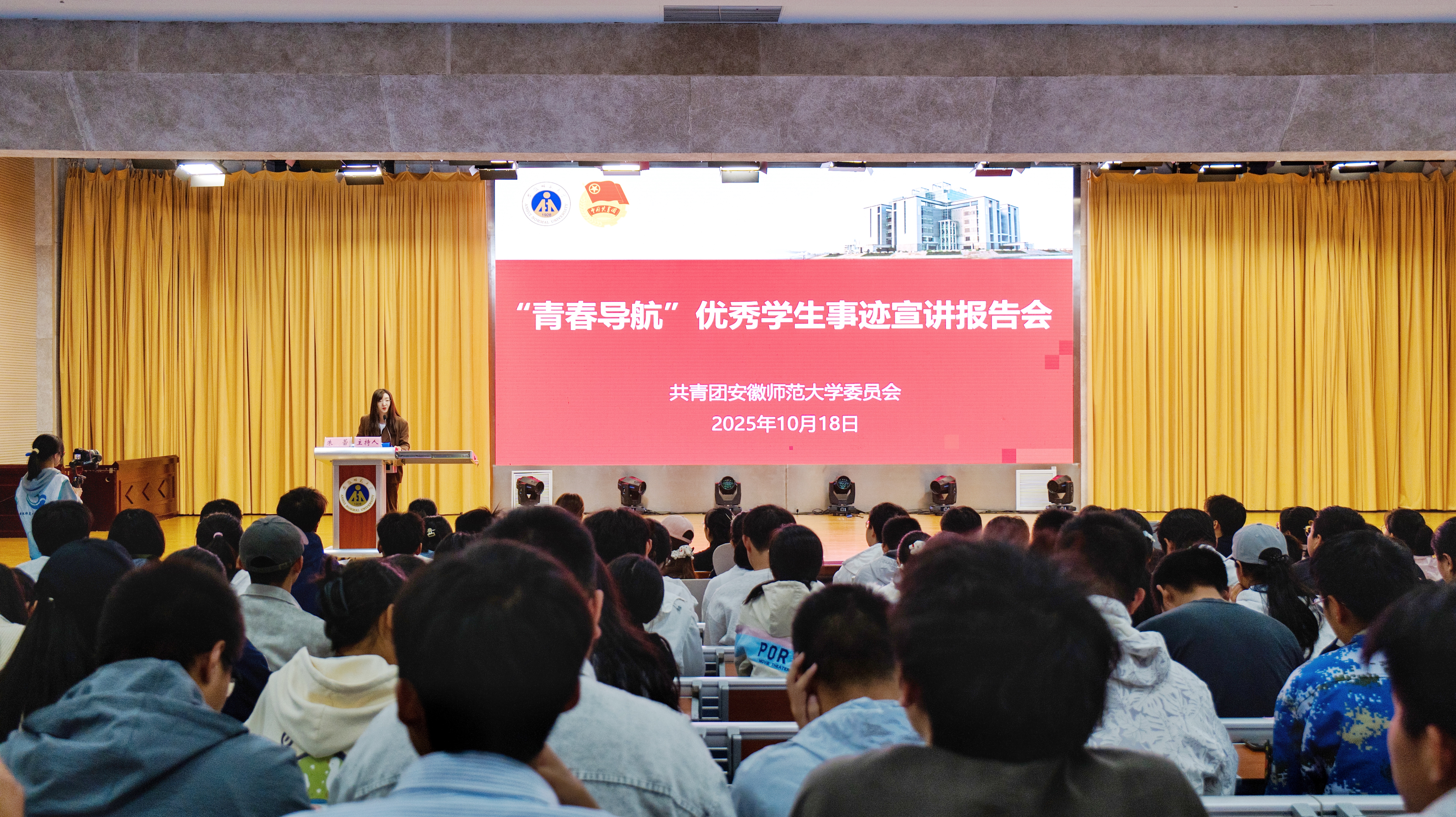 为发挥优秀学子的榜样示范作用,学校举办“青春导航” 专题宣讲会,邀请6名本科高年级及研究生优秀学子,从不同成长路径分享经验,为新生提供可借鉴的“成长样本”。 历史学专业2025届本科生谢易真以 “锚定专业固逐梦之基” 为主线,讲述自己在师范技能培养中“从热爱到深耕”的历程,鼓励新生扎根专业、厚积薄发;汉语言文学专业2024级本科生宋依於结合参军经历,分享军旅生活中“追求极致、心怀家国”的精神锤炼,号召新生在时代浪潮中书写无悔青春;马克思主义学院2023级硕士研究生孙悦讲述在凉山普格县支教时推动“推普工作”、发起公益项目的实践故事,展现师大学子的社会担当;体育学院2022级本科生李婉清:从“学业与工作平衡”切入,分享自己在勤学笃行与多元实践中的经验,勉励新生“以梦为舟、勇于突破”;物电学院 2022 级本科生闫星星以“向竞赛而学”为主题,介绍参与高水平学科竞赛的备赛心得,鼓励新生“敢于尝试、迈出第一步”;新闻与传播学院 2025 级硕士研究生白雪松结合 “西部计划”志愿服务经历,分享自己在学生工作、理论宣讲中的成长,号召新生以奋斗诠释青春担当。