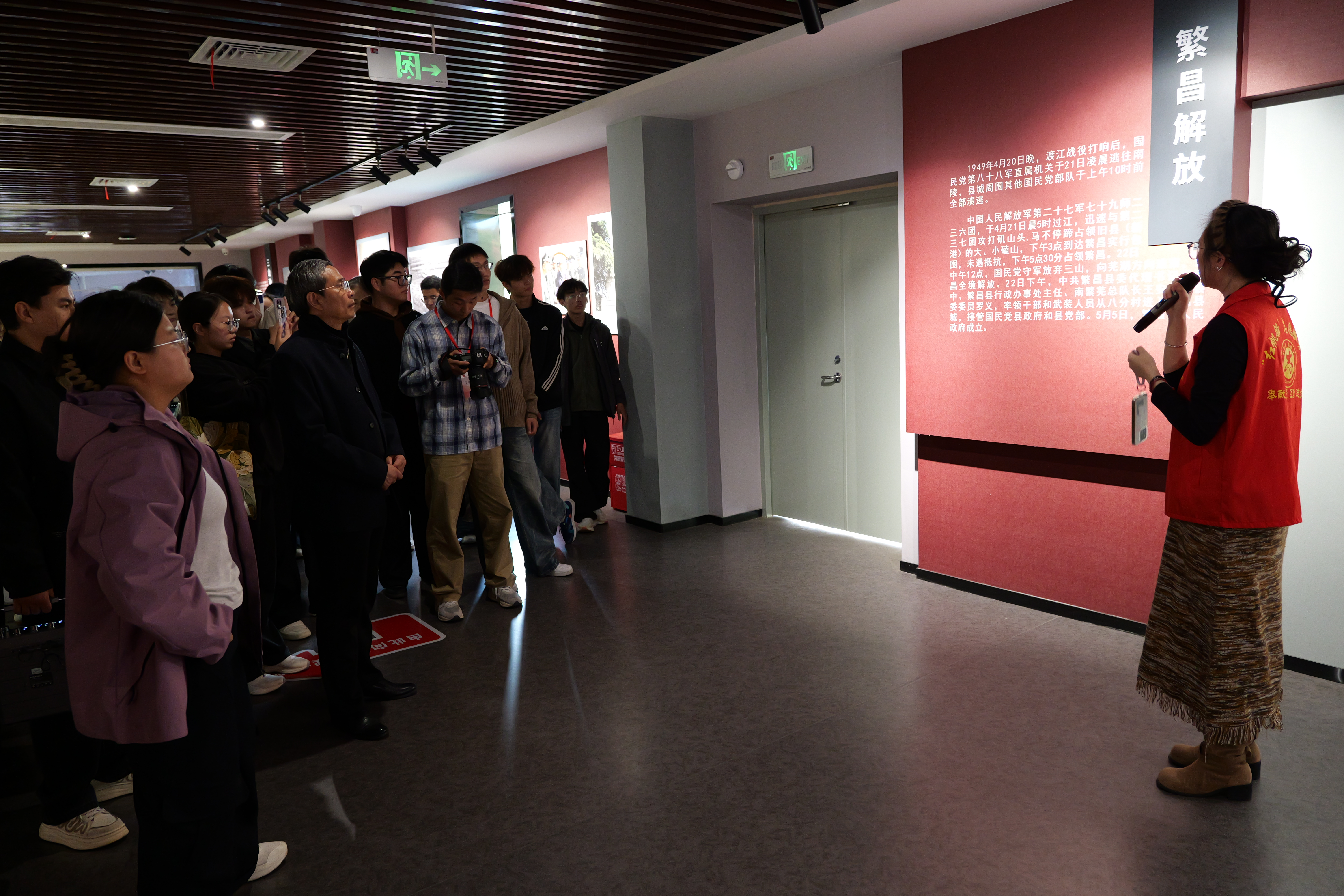 在渡江战役夏家湖登陆点纪念馆庄严肃穆的氛围中,师生们凝望一幅幅展现铁血征程的图片,触摸记录那段烽火岁月的珍贵革命文物,大家深受震撼。一幅幅泛黄的老照片、一件件珍贵的历史文物、一个个感人的战斗故事,将大家带回烽火连天的渡江战役岁月。师生们认真参观并了解了渡江战役夏家湖登陆点中令人动容的故事,感受到中国共产党领导下人民军队的英勇斗争和伟大胜利。大家纷纷表示这不仅是一次历史的回顾,更是一次心灵的洗礼和精神的升华,师大学子应将革命精神的力量内化于心、外化于行,以实际行动传承红色基因。