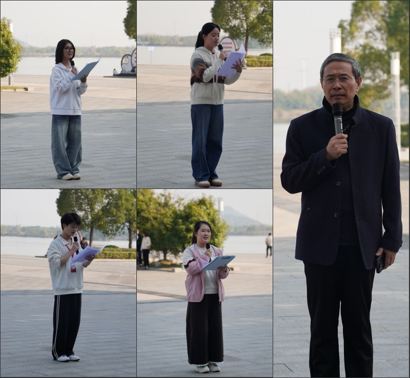在渡江战役夏家湖登陆点纪念馆的实践课堂上,路丙辉老师以“人需要有一点精神”为主题,引导同学们对历史的回望与对自我的观照相结合,开展了一堂富有深度的现场教学。他以渡江精神为镜,希望同学们映照自身,砥砺成长。