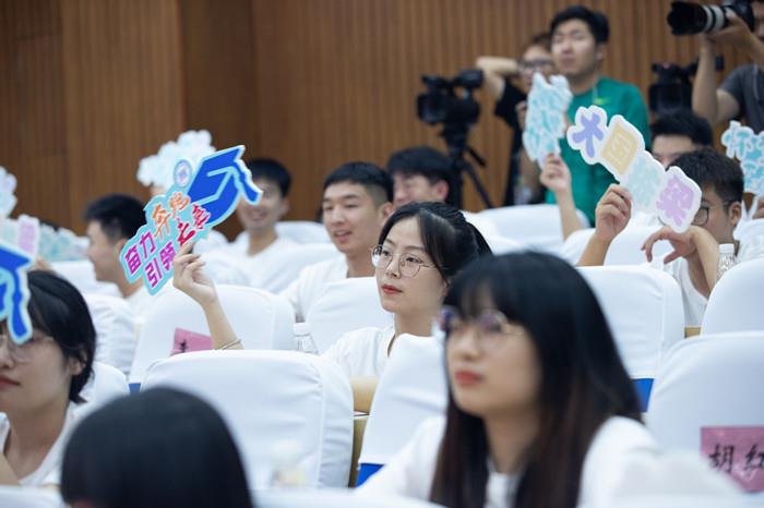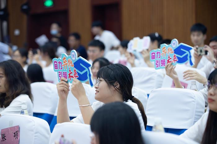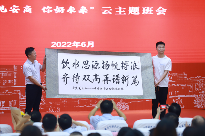 学生代表为学校送上由3000名同学共同参与征集的16字祝福——“饮水思源 扬帆搏浪 齐待双高 再谱新篇”,表达对学校满满的感恩和深深的祝福。