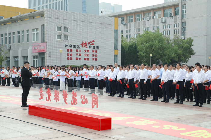 10月1日清晨,我校与安徽机电职业技术学院千余名师生齐聚笃学楼广场,共同举行庆祝中华人民共和国成立76周年升旗仪式,以庄严神圣的方式表达对伟大祖国的崇敬与热爱,祝福祖国繁荣昌盛。