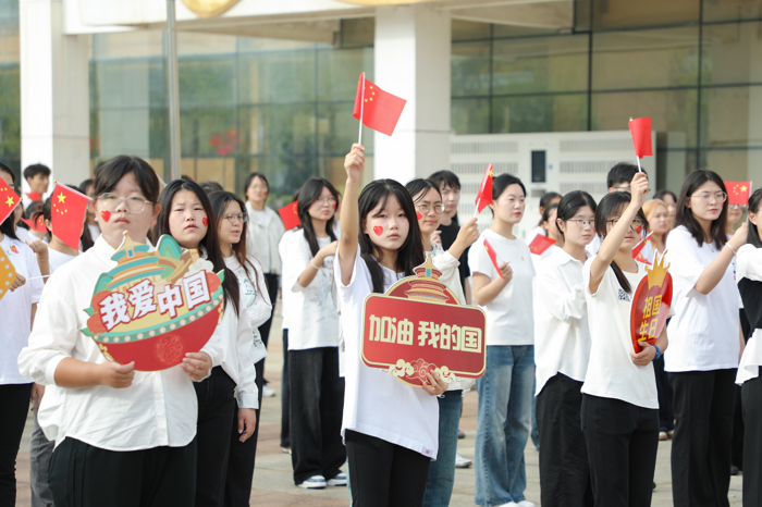仪式最后,全体师生挥动手中国旗,齐声高唱《歌唱祖国》,嘹亮的歌声与澎湃的激情在校园上空久久回荡。朝阳之下,五星红旗迎风飘扬,熠熠生辉,照亮每一位师生热忱的面庞,也映照着教育工作者与青年学子共同的初心与梦想。七十六载峥嵘岁月,新时代赋予新使命。面向未来,全体师生将以“功成不必在我,功成必定有我”的信念,踔厉奋发、勇毅前行,共同谱写职业教育高质量发展的新篇章。